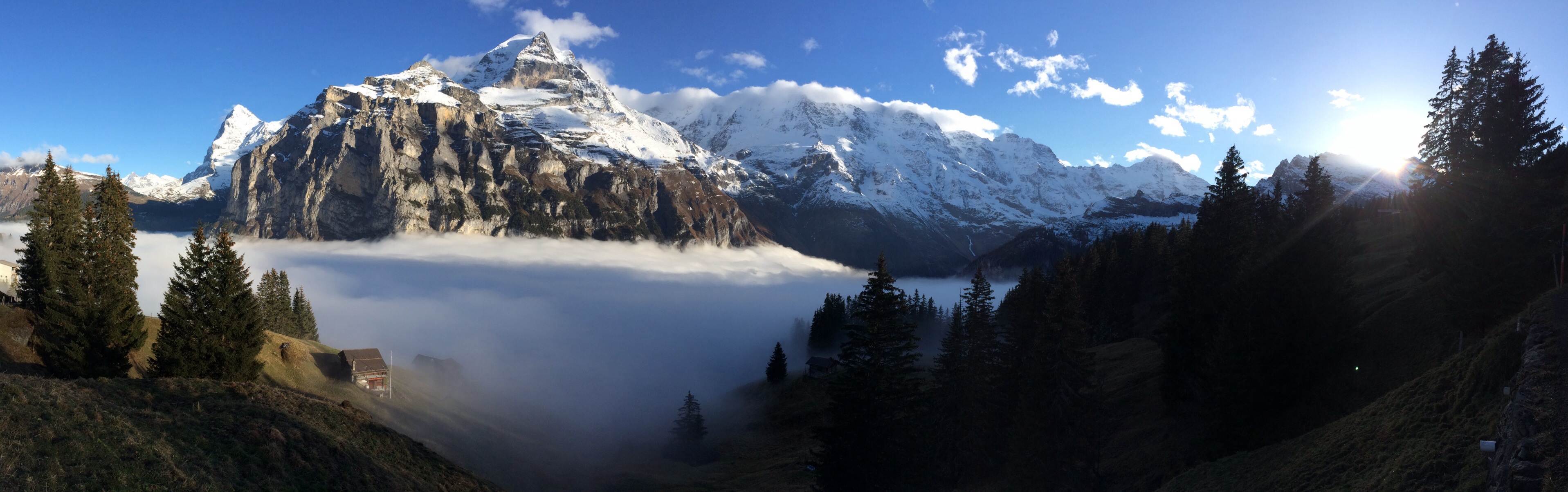 The Mountains from above Murren Published January 5, 2015 at 3834 × 1204 in ABOVE CLOUDS & BELOW PEAKS It was time to turn back after the wintry sun disappeared behind the peaks.