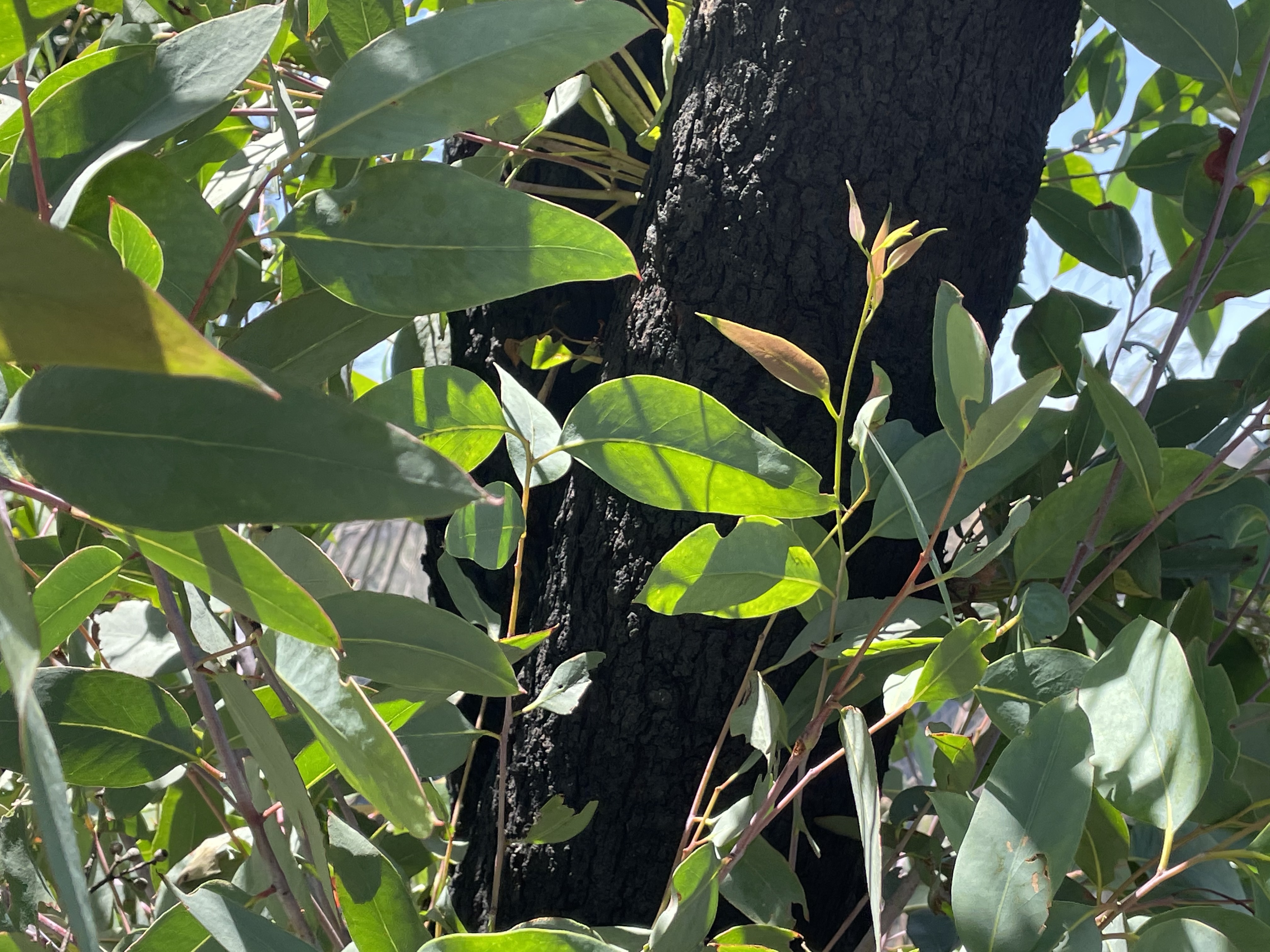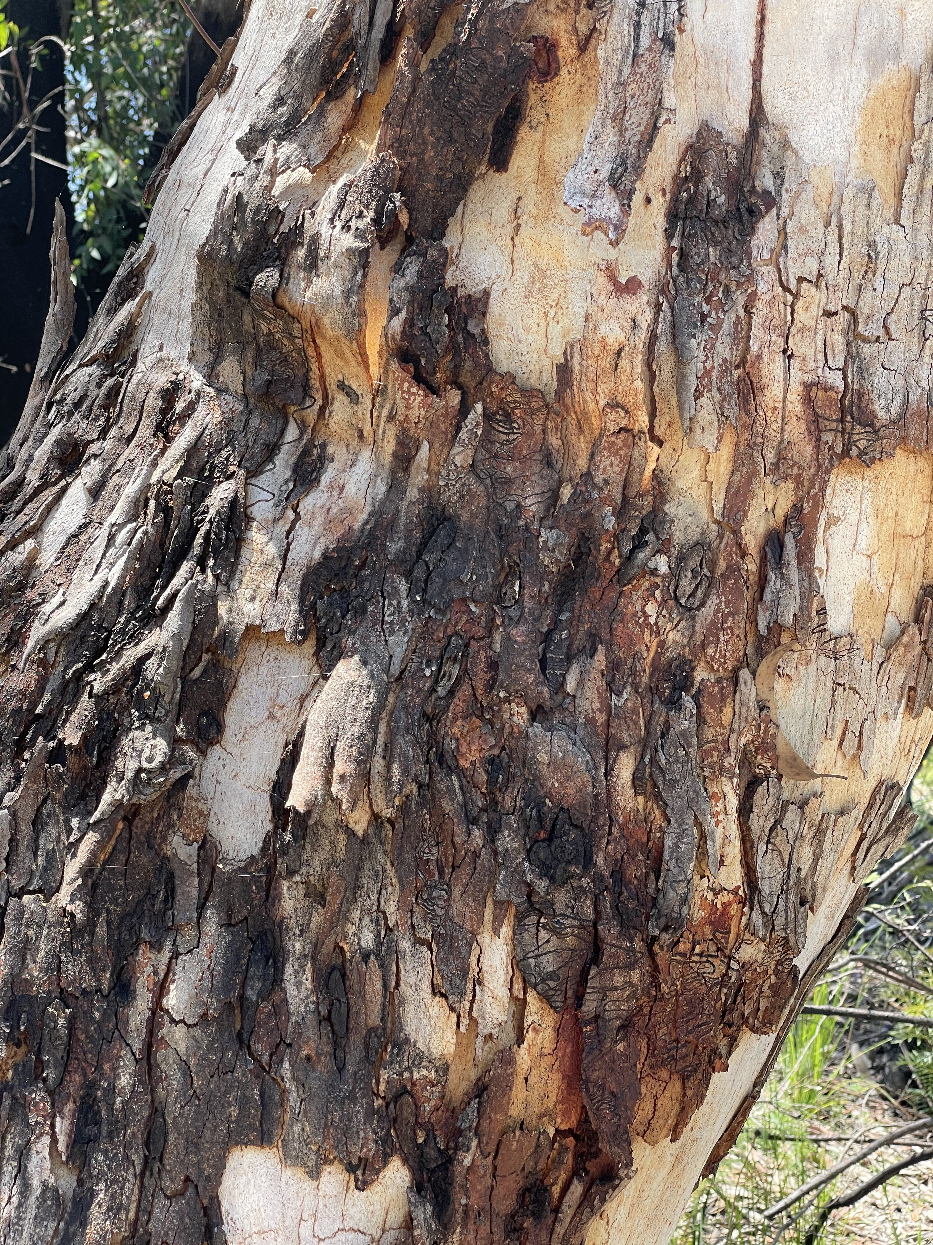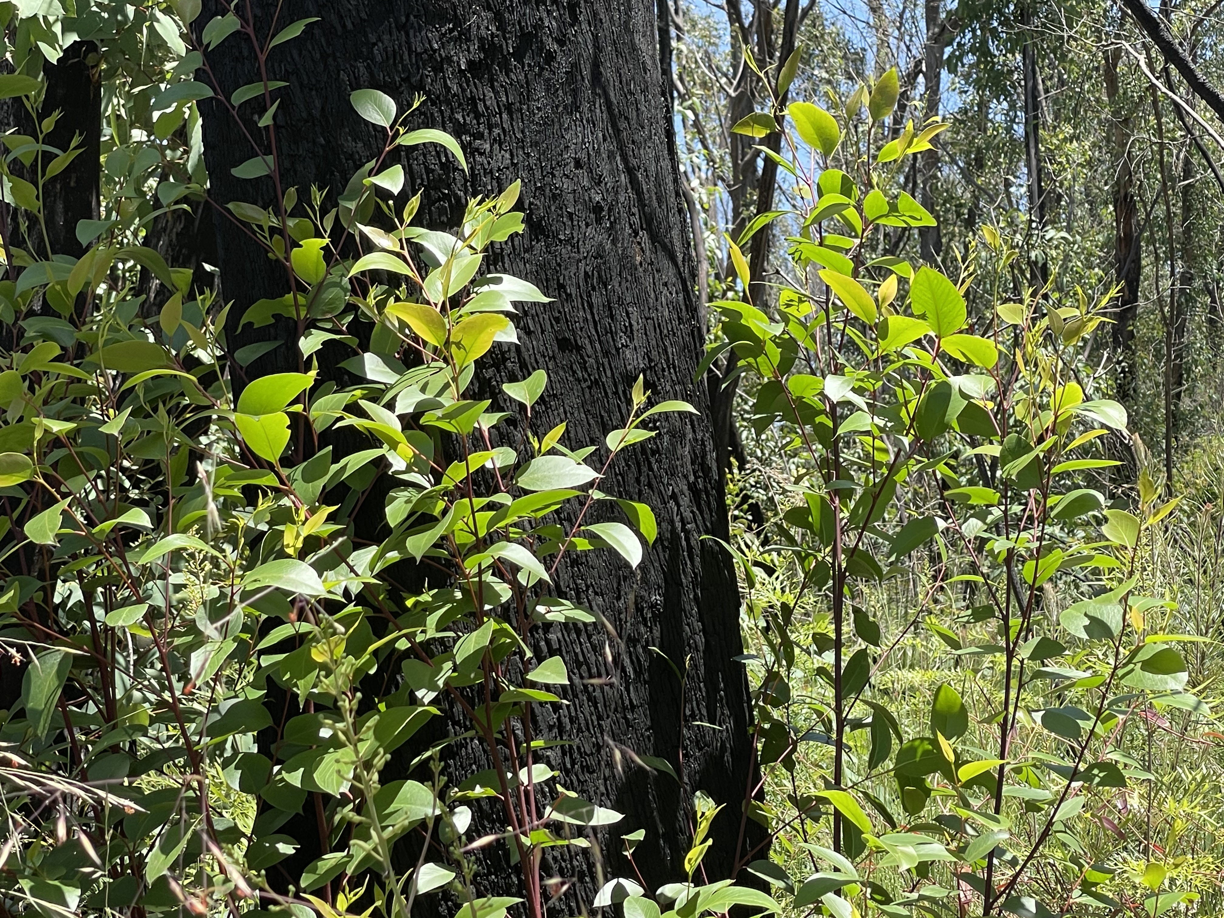 The forest has been completely transformed. Gone is the overhead canopy and ferny undergrowth, the cockatoos, honeyeaters and Rosella’s. In their place the grasses are thriving and over growing the track, blackened trunks are furry with lush new growth.