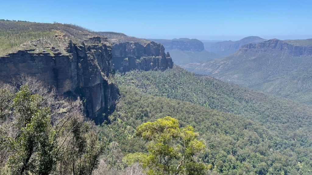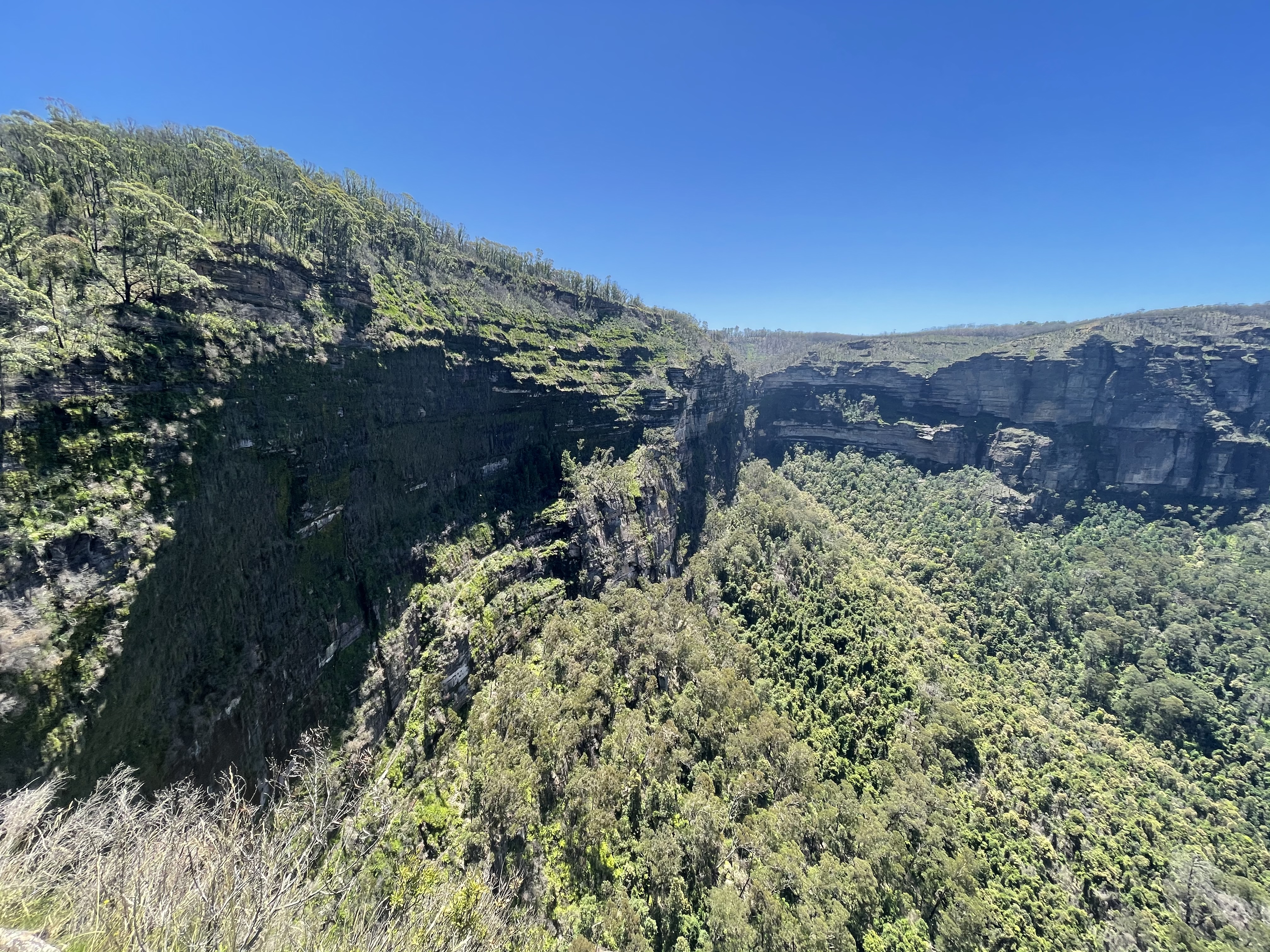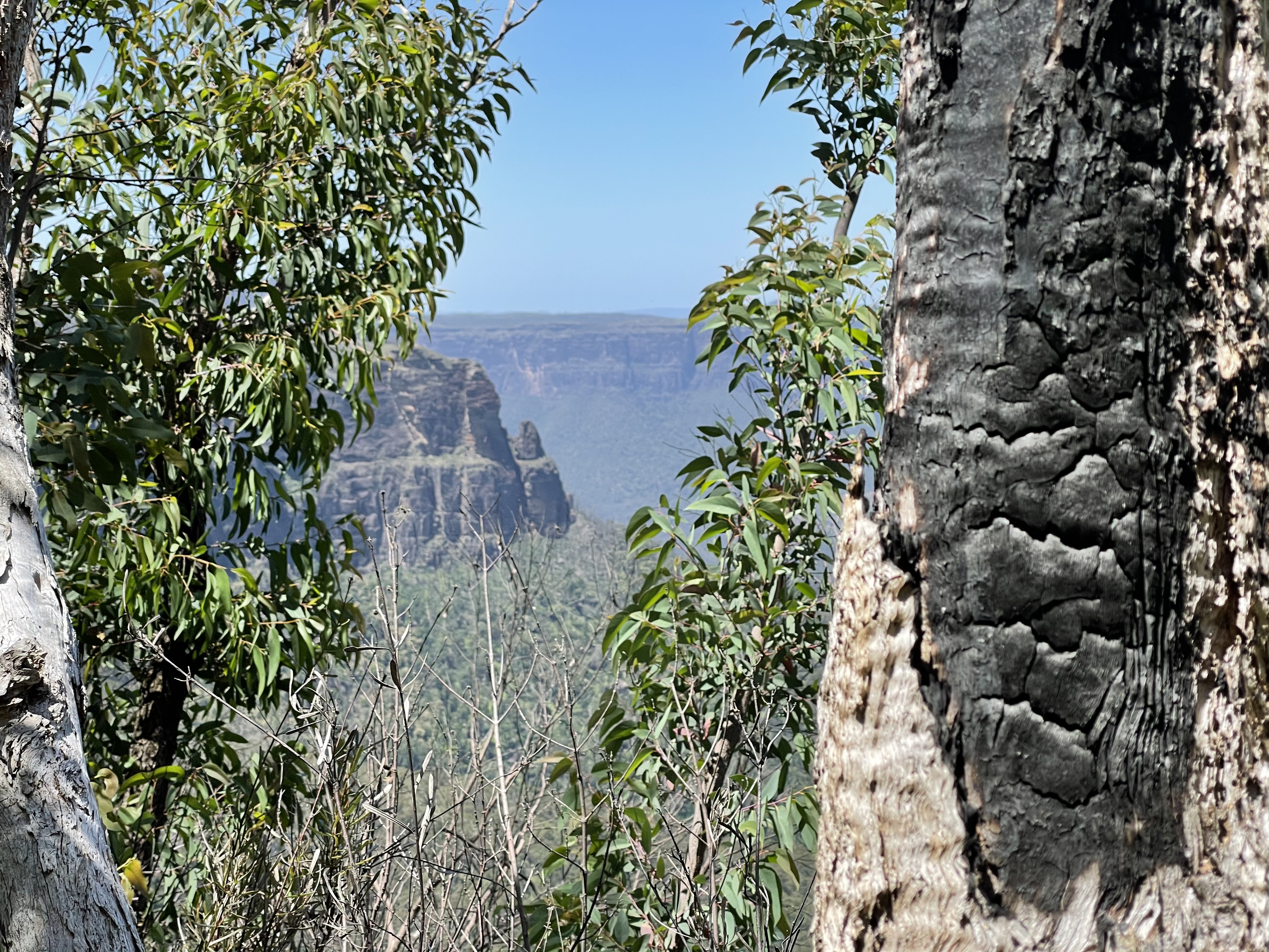 We adore the Blue Mountains, and come as often as we can. For obvious reasons this year, we haven’t been up as much as we’d like, so driving through the canopy of trees to Govett’s Leap Lookout, we wondered how the scorched earth was recovering from last year’s inferno.