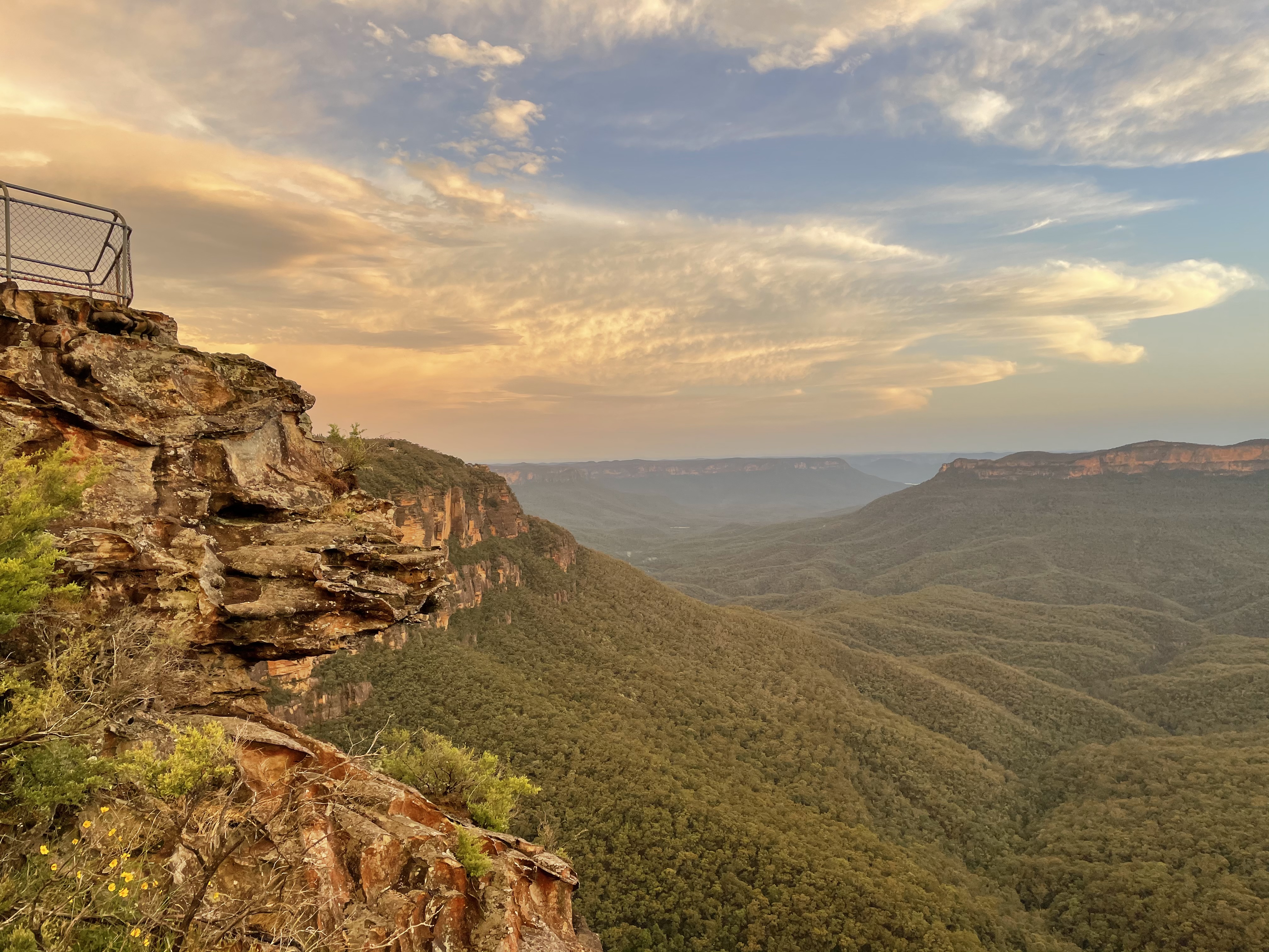 “Feel that breeze” I sighed leaning into the wind rising up from the valley below. Barrow Lookout is an exposed rocky outcrop at the edge of the cliff and we couldn’t linger in the heat of the full sun.