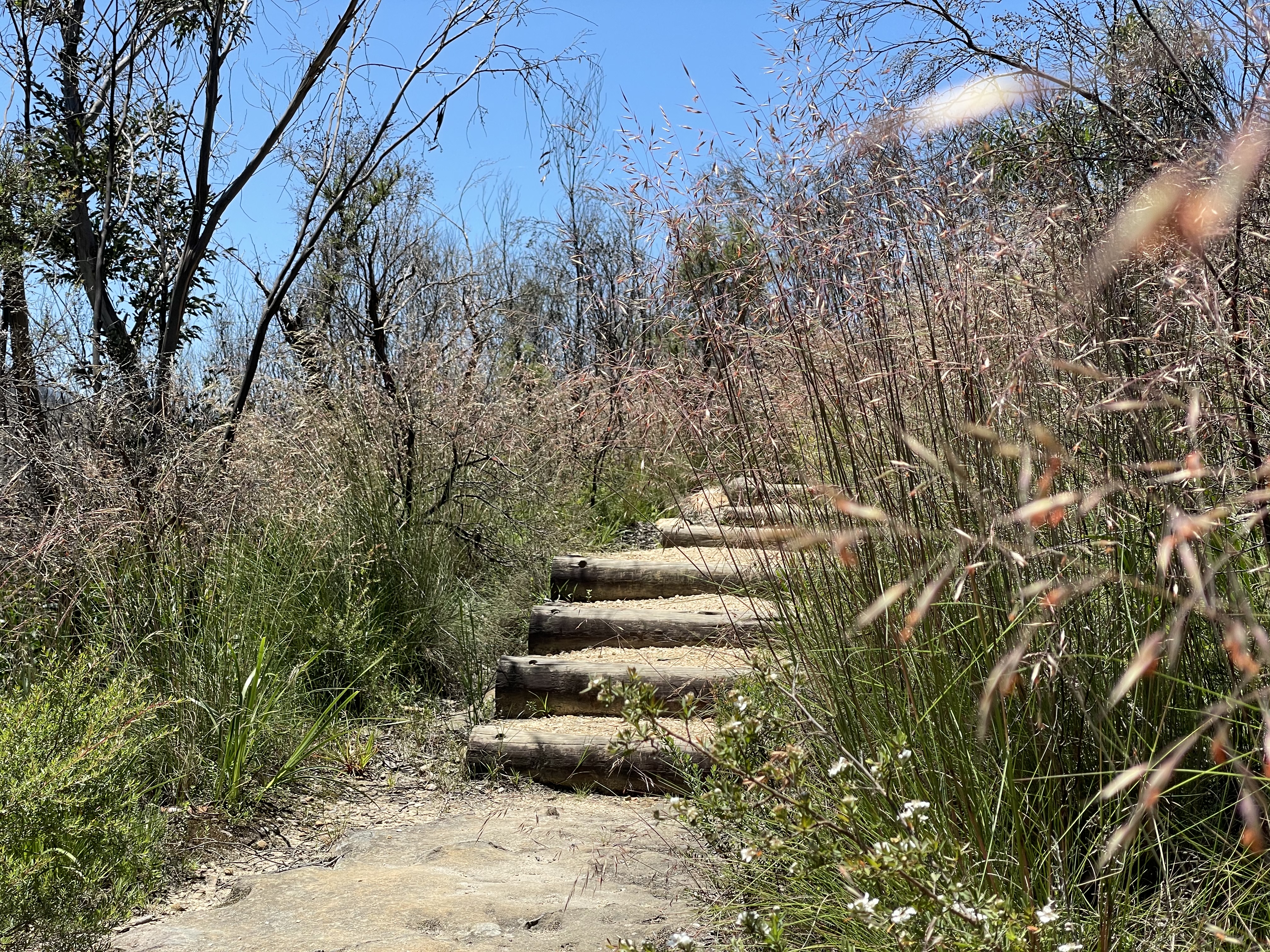 “Oh no, the track is still partially closed” I said reading the National Park sign. Closed from Barrow lookout so we decided to carry on as far as we could knowing that the stairs would give us a decent workout on the return.