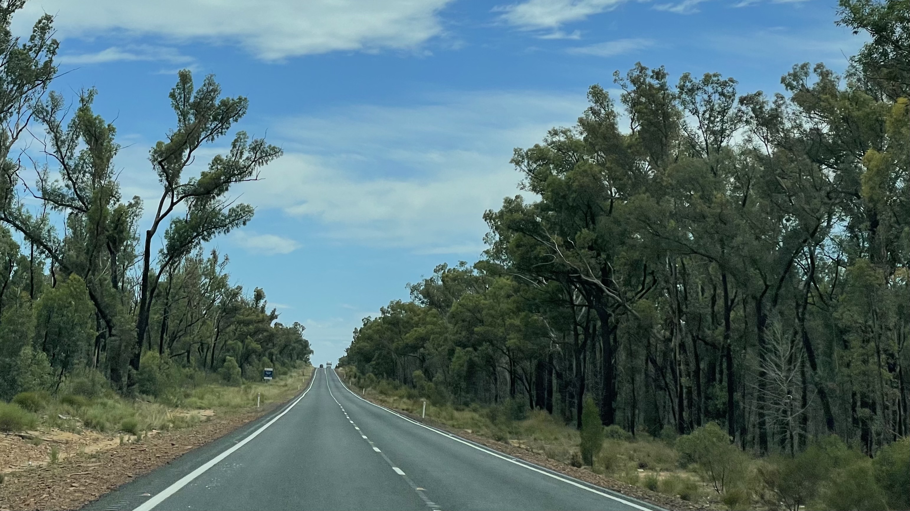 After driving for an hour on a straight flat road, we’re getting a better sense of the scale of our country. Coonabarabran to Narrabri is (straight) through the Pilliga Nature Reserve. Here too, the creeks were dry and the forest is recovering from bushfires.