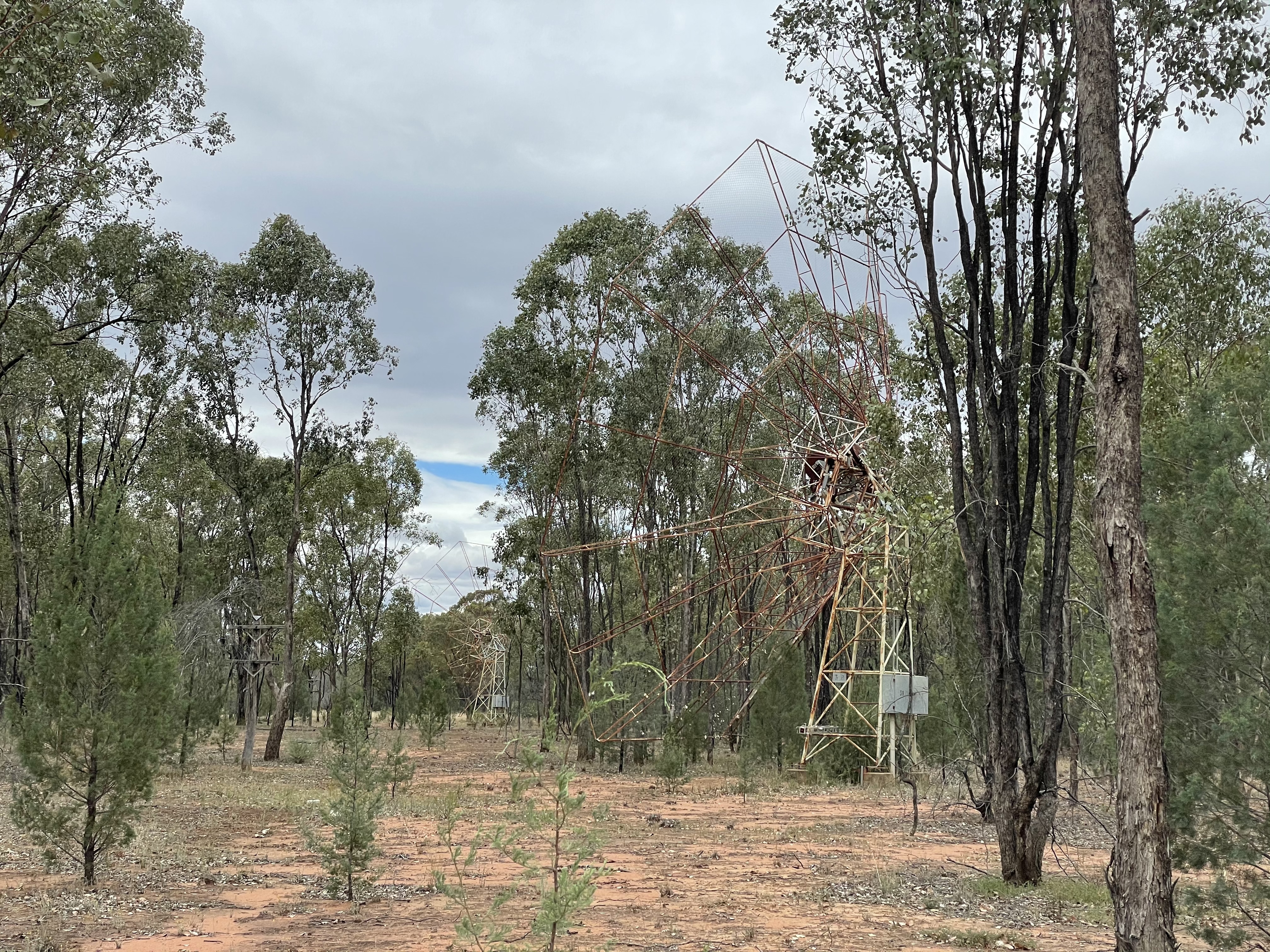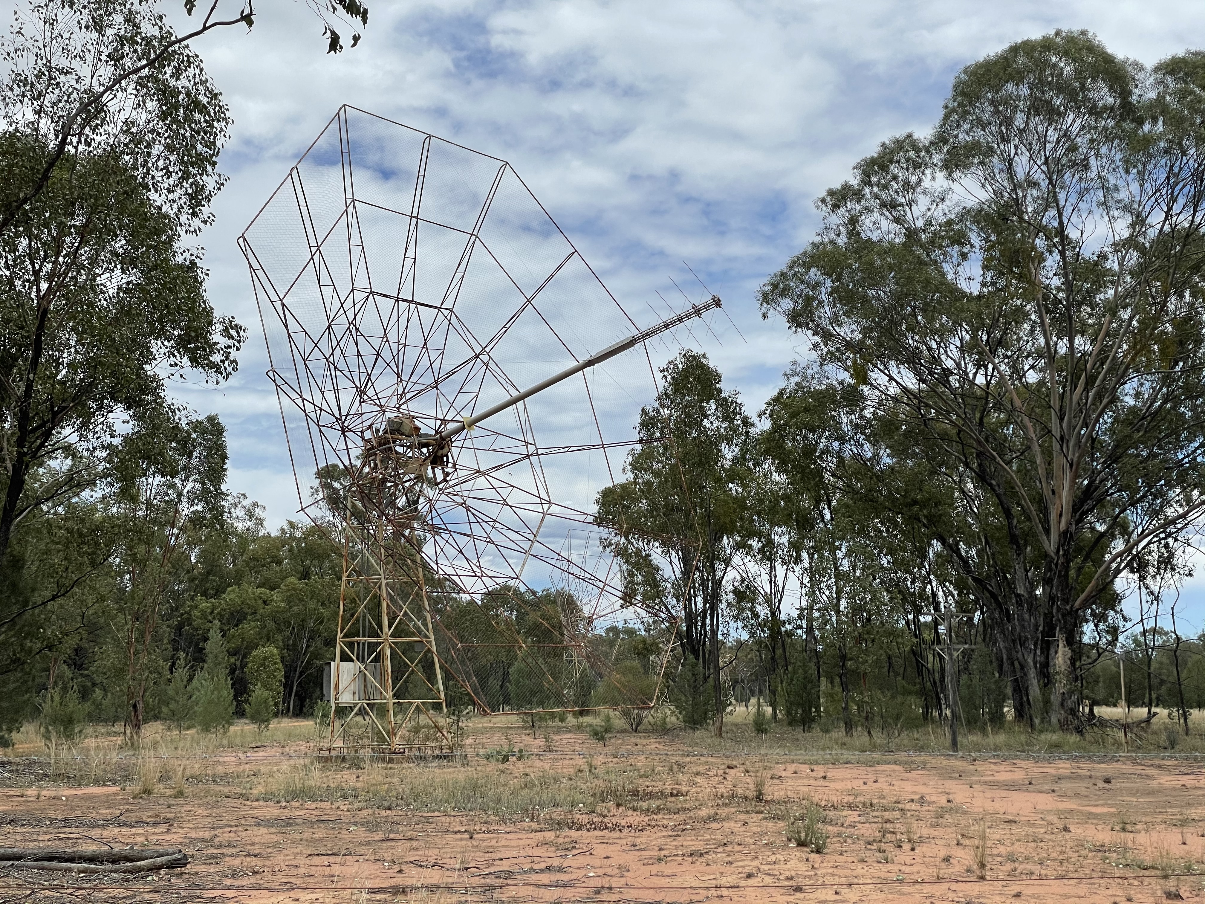 Before the Compact Array telescopes, this used to be a Solar Observatory, and some of the disused structures are left rusting artfully in the bush. We pulled over to investigate these strange skeletons.