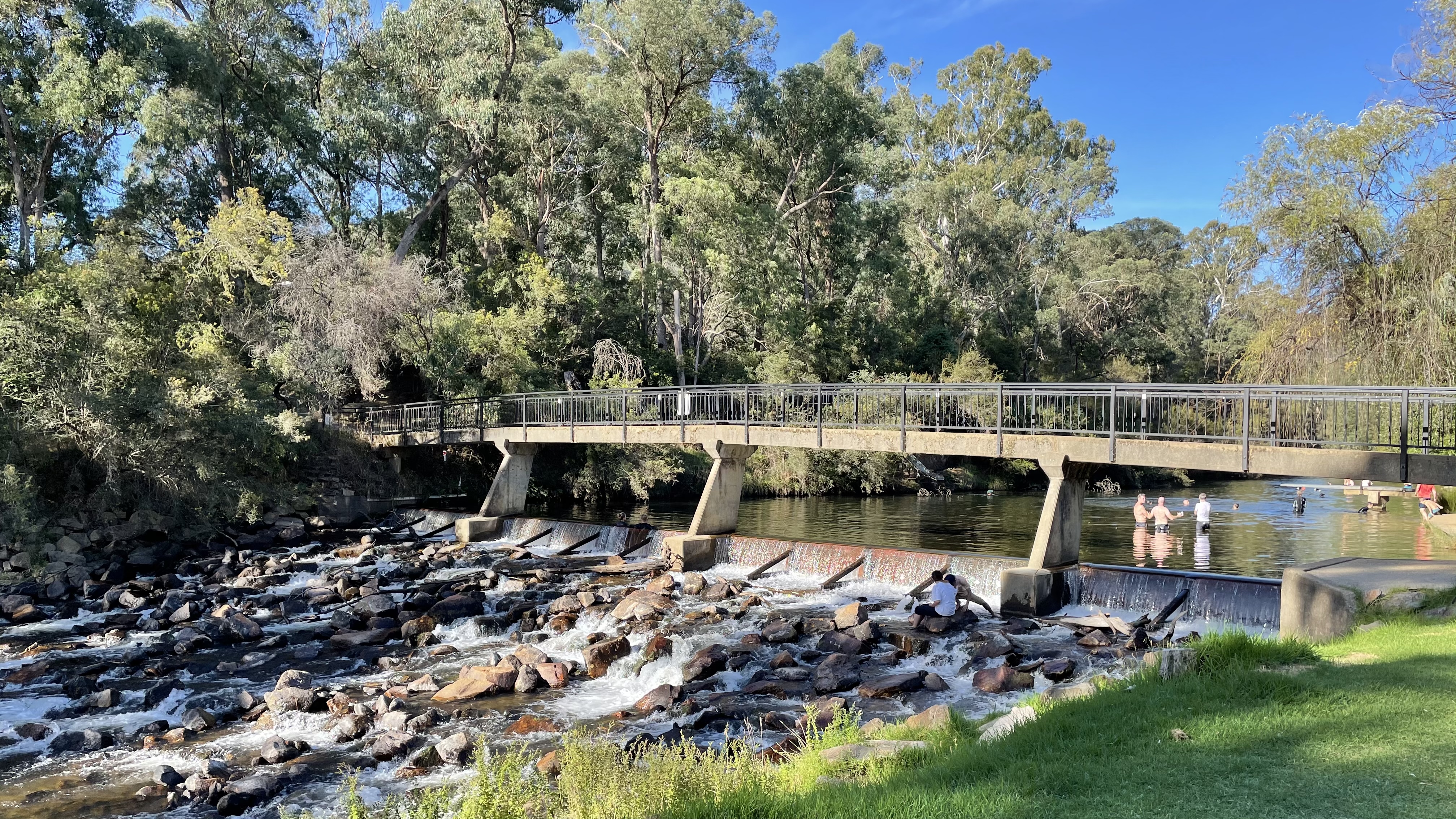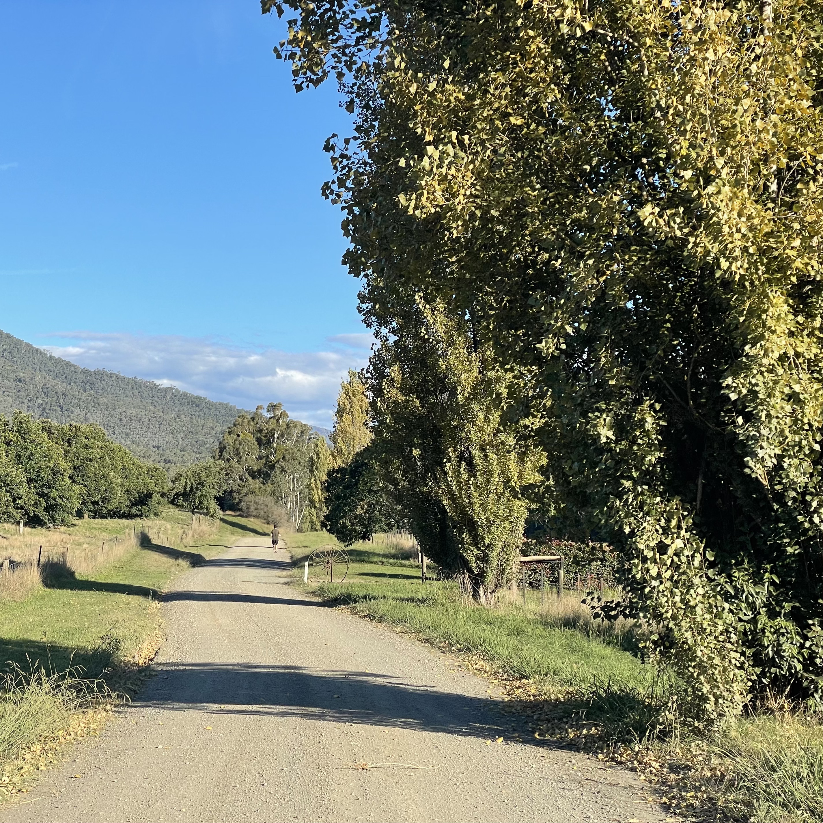 But for all the frolicking in the river, we thought it had a strange smell. Like a pond – it didn’t smell like a fresh mountain stream. Before reaching Bright, it has passed through farmland so it would be full of organisms and run off from agricultural lands.