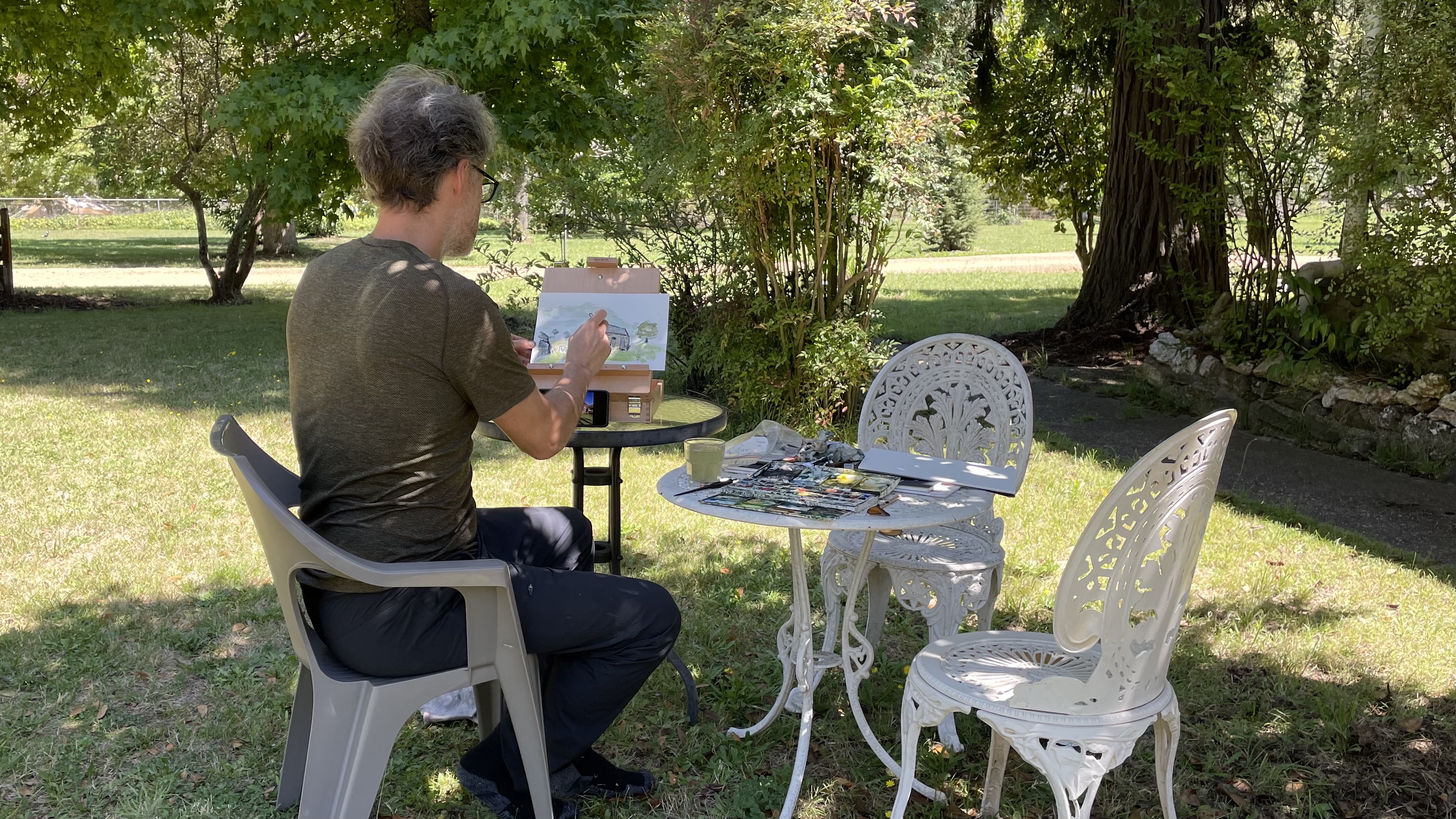 We’ve really been enjoying the garden and spend as much time as we can outside. Sketching, painting, writing, reading in the shade of the trees, and listening to the different birds.