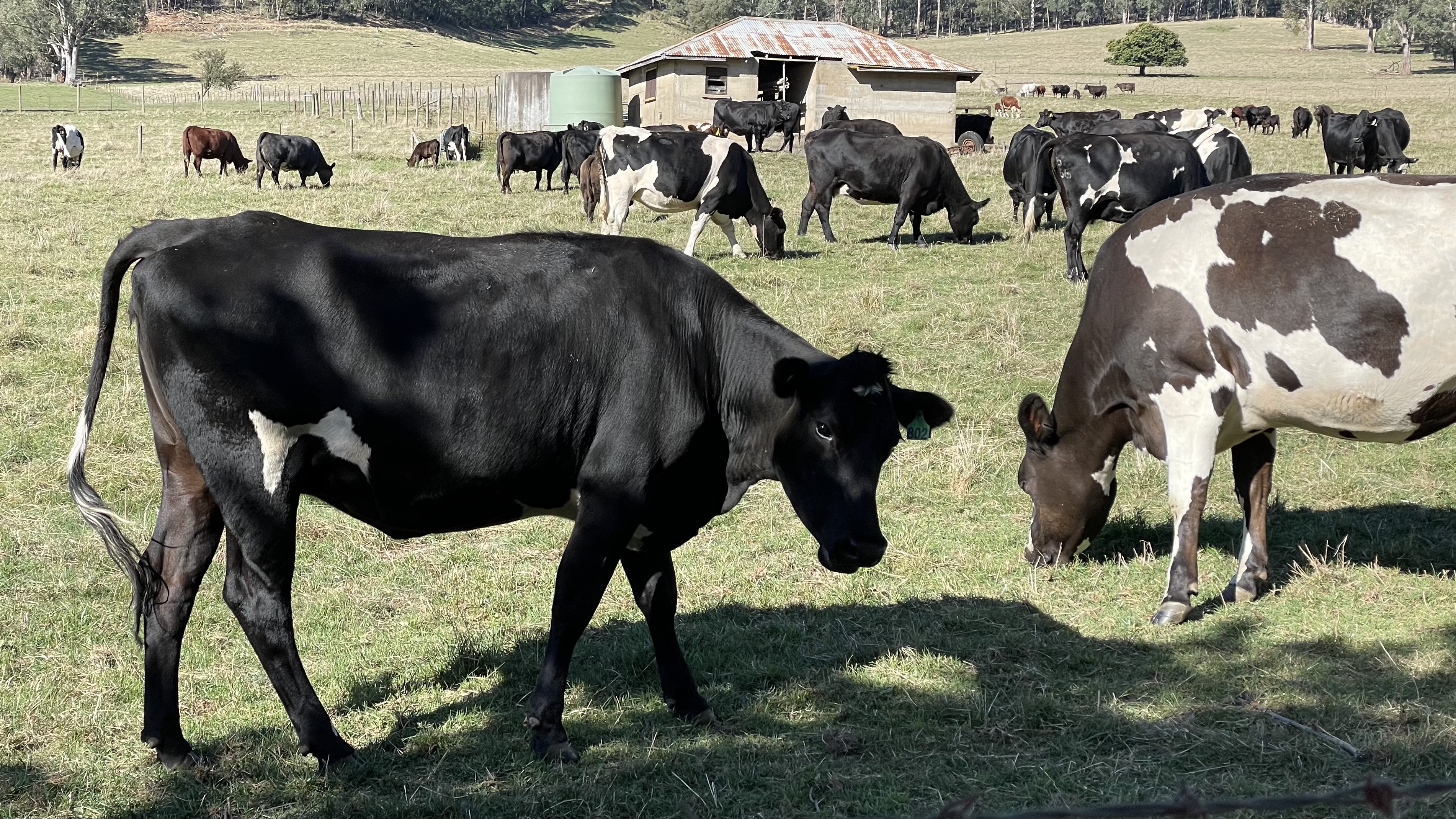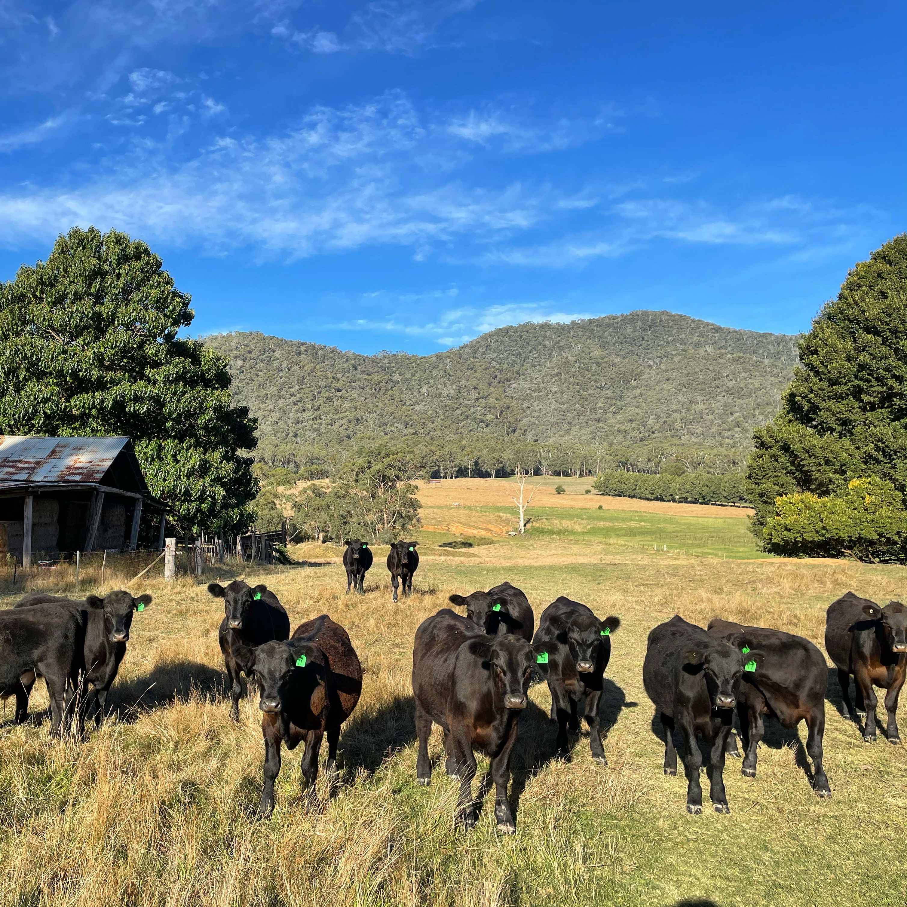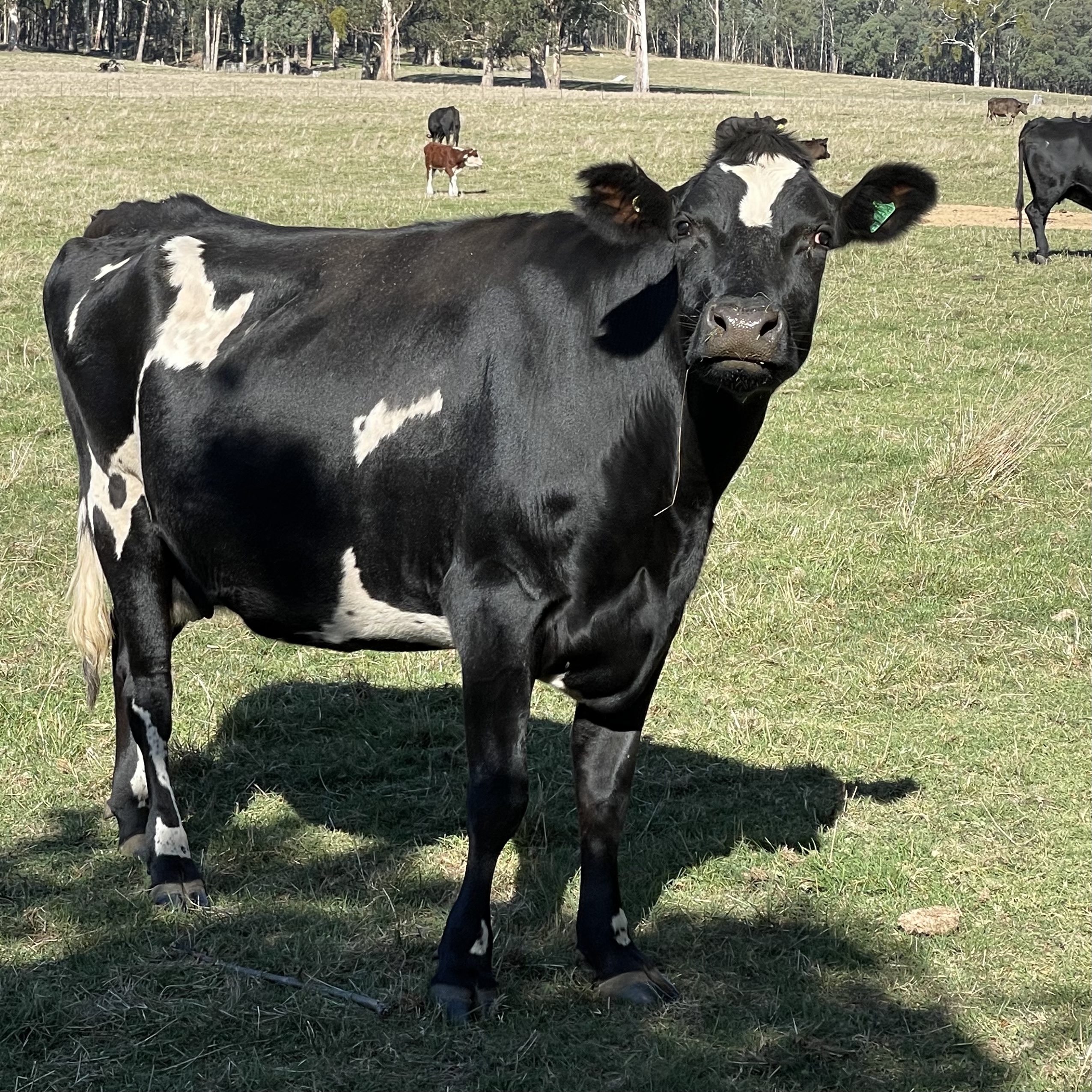 Occasionally the farmers drive a Ute loaded with hay into the paddock next to our cottage. The cows are hilarious, they come running form every direction and practically mug the Ute.