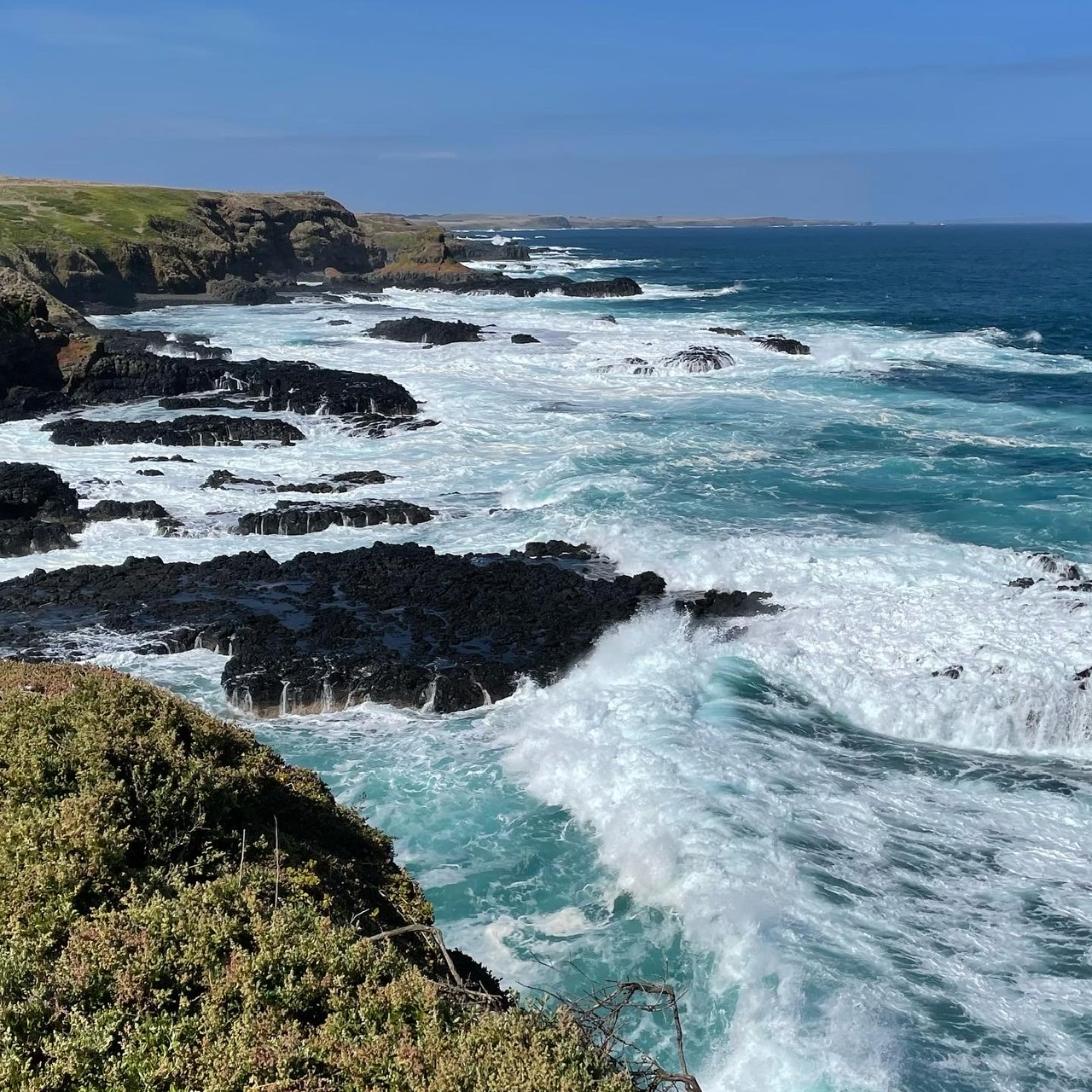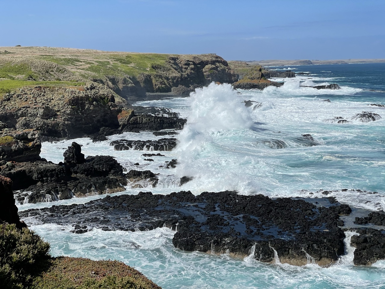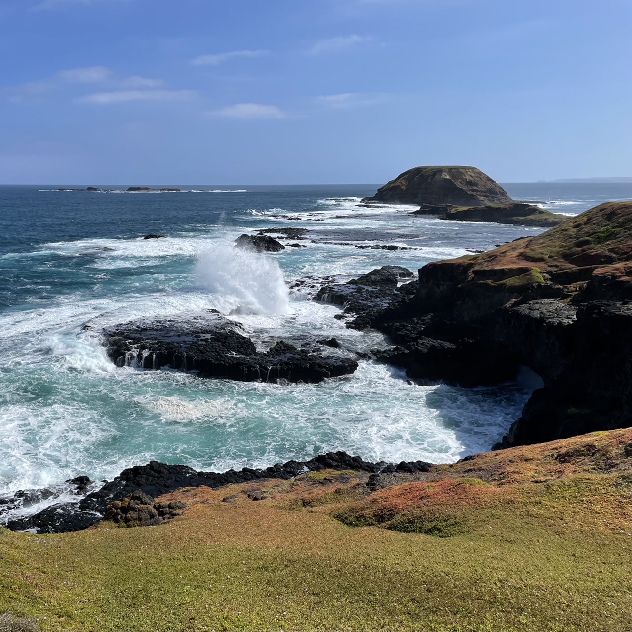 At the Nobbies Point Lookout, we stood mesmerised by the raw energy of the ocean. Huge waves swept up and smashed over the rocks, the deep sound of impact echoing over the headland.