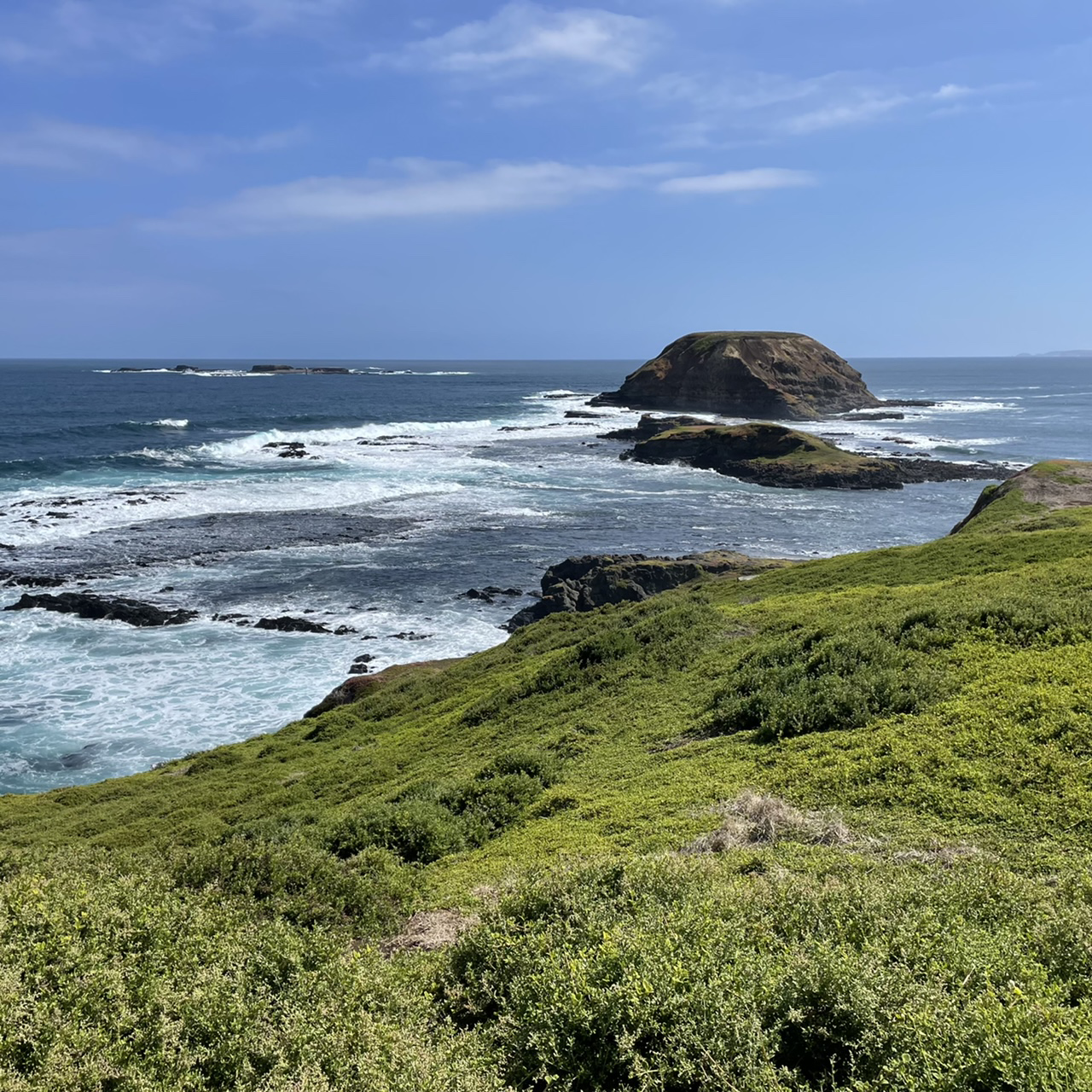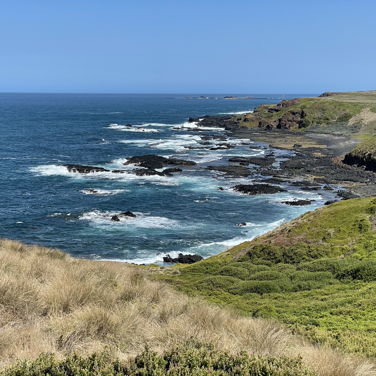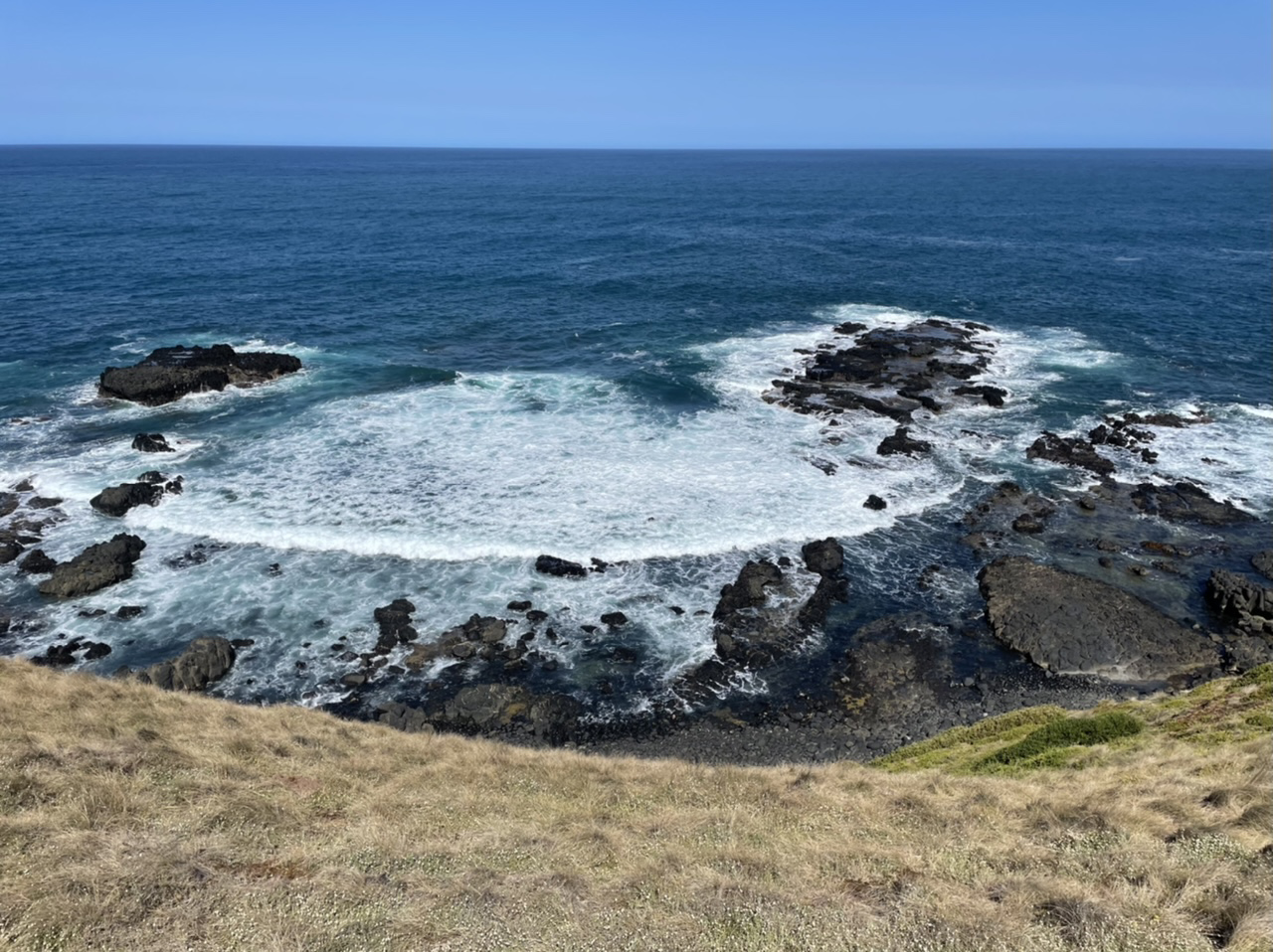 At the Nobbies Point Lookout, we stood mesmerised by the raw energy of the ocean. Huge waves swept up and smashed over the rocks, the deep sound of impact echoing over the headland.