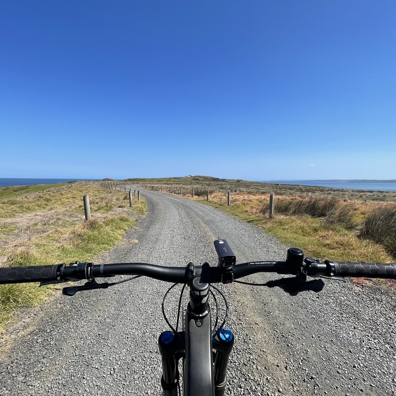 Unloading the bikes in the car park, we could see a dirt road that hugged the coast and decided to explore in that direction.