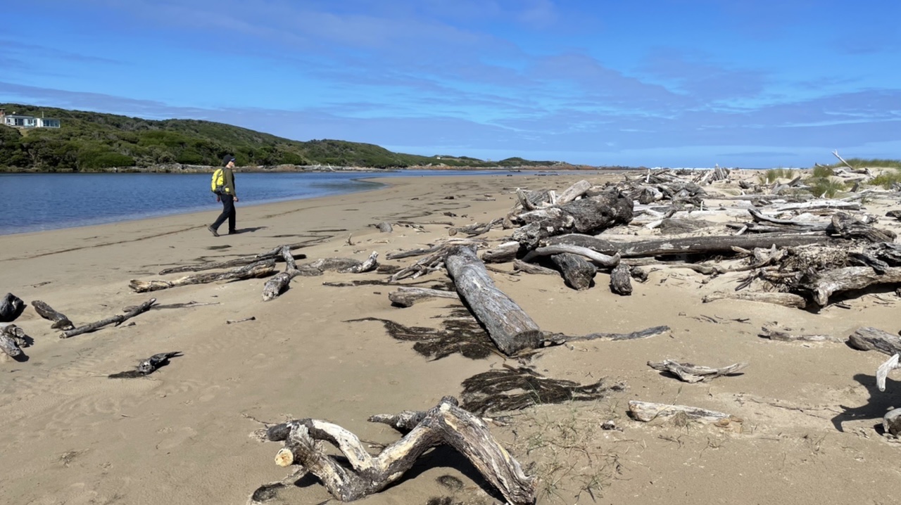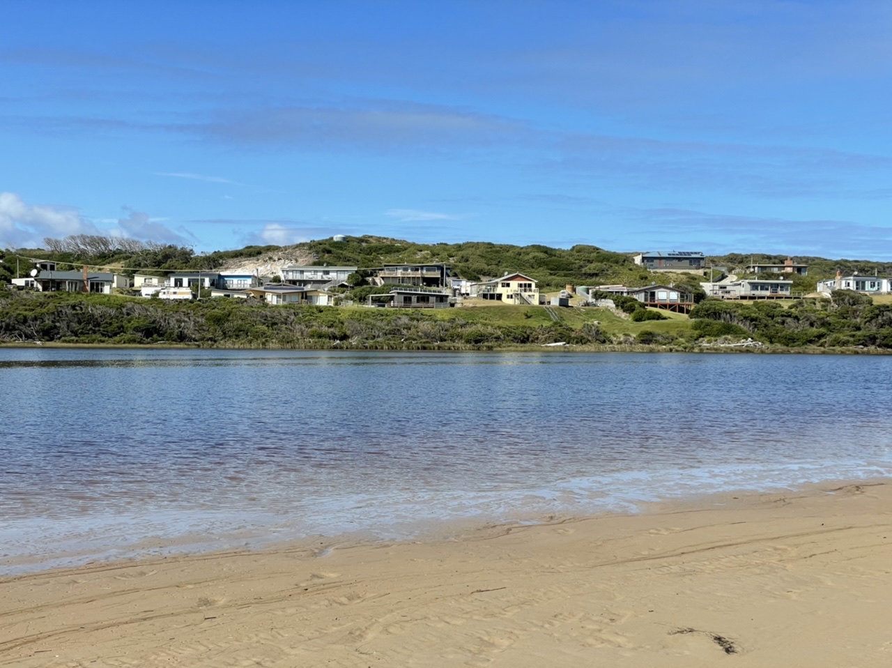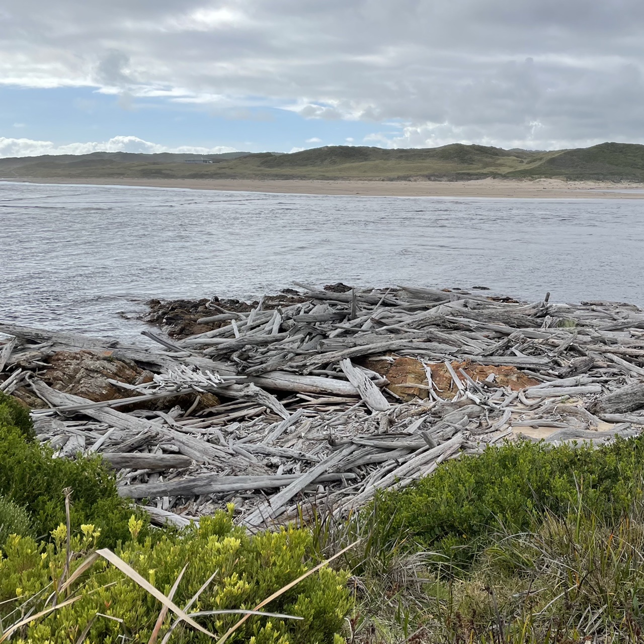 The colour of black tea, Arthur River stained the shallow surf as they crashed together.