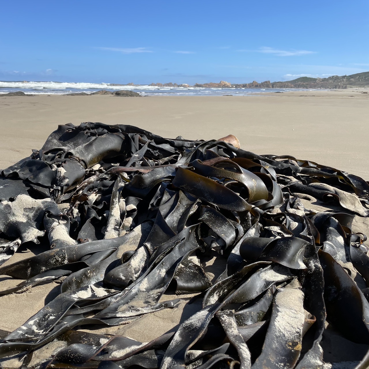 The coast was strewn with washed up marine plants. Some as fine as hair, others thick like leather. I’ve never seen so much variety on one beach.