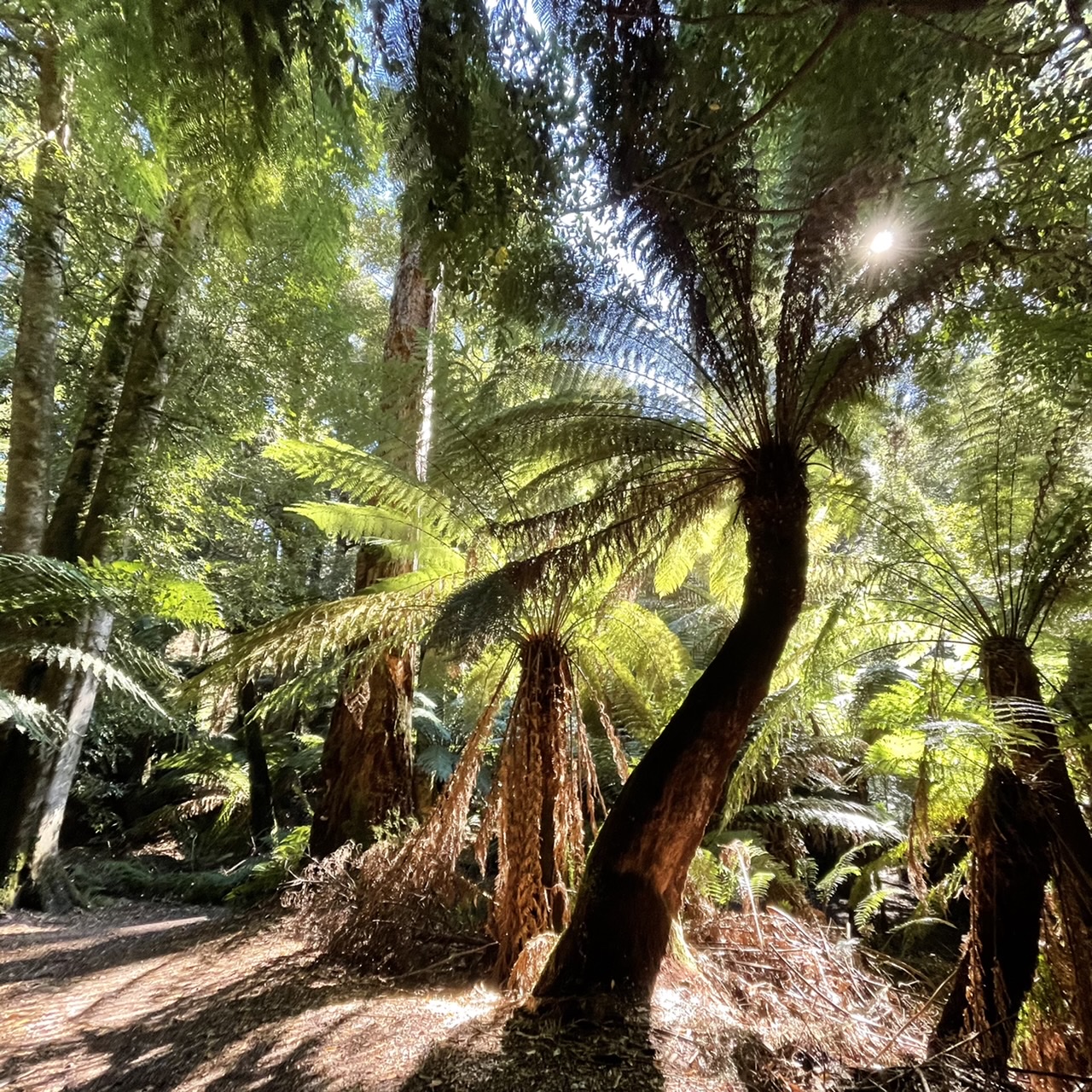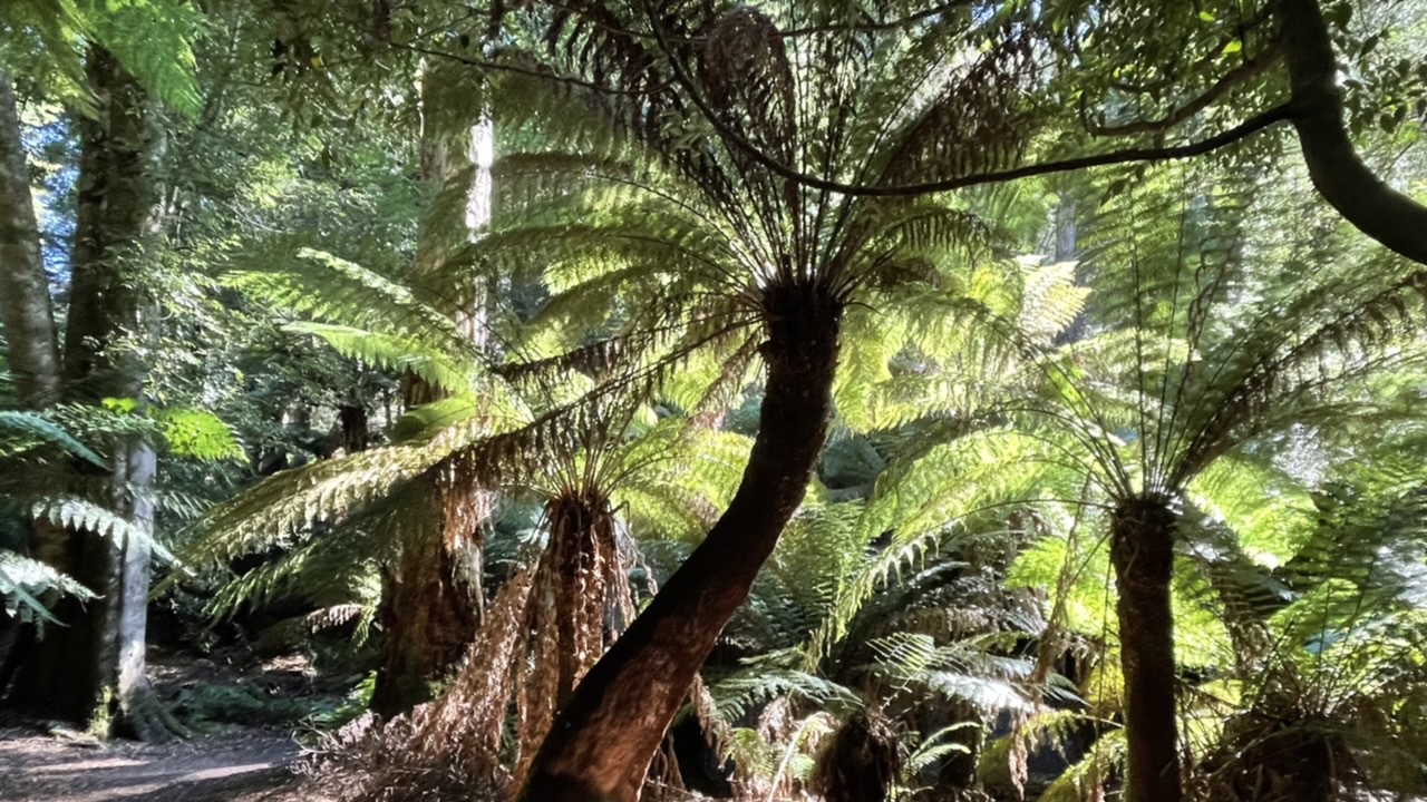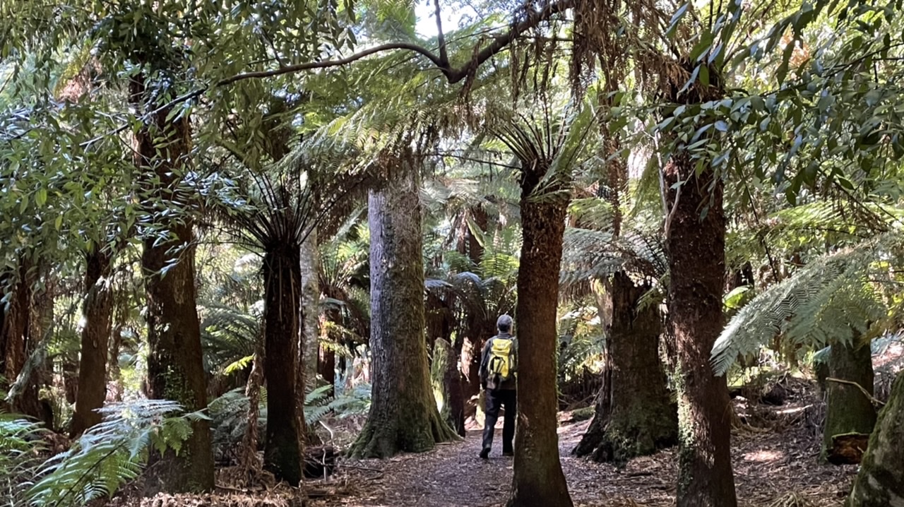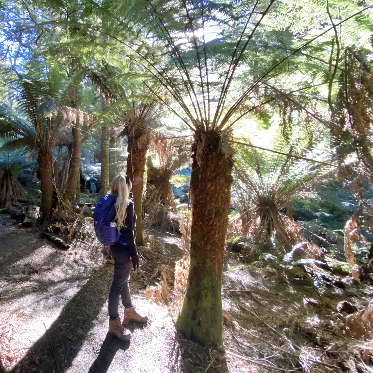 From the trailhead the track headed down through a lush grove of fern trees, like we’ve never seen before.