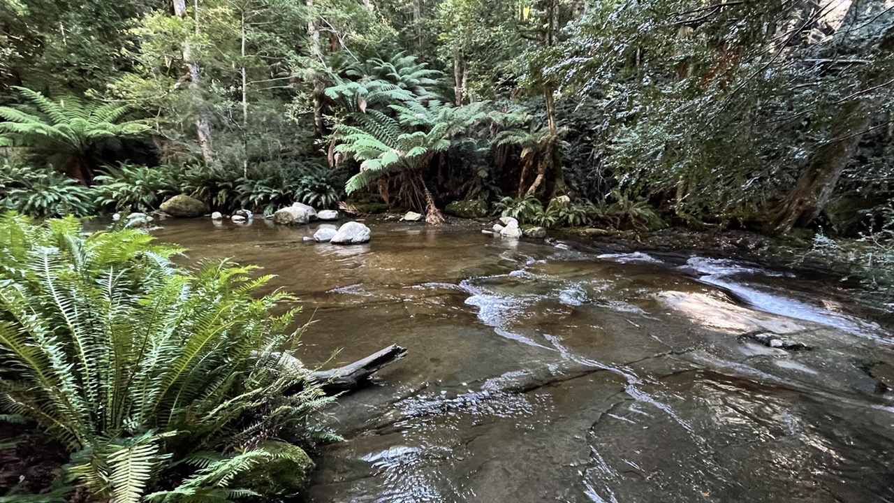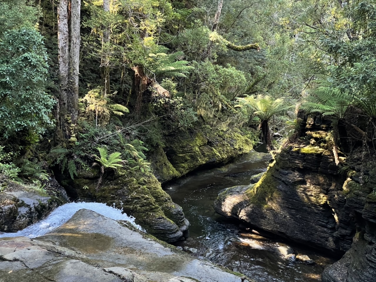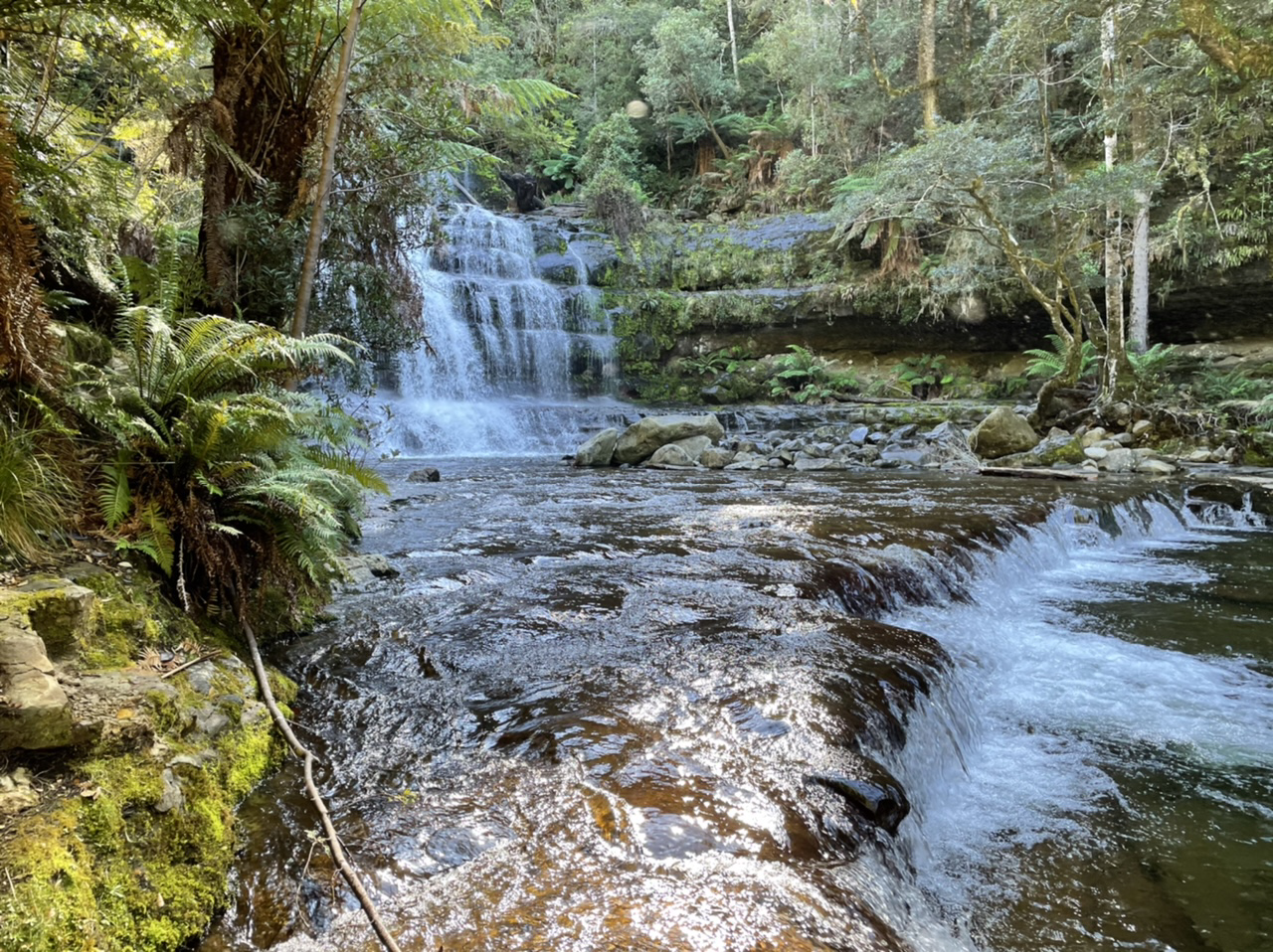 The river had broadened out by the time it tumbled over the steps of Liffey Falls in a picturesque display. A classically beautiful waterfall, as if built by the Tasmanian Tourism Board.