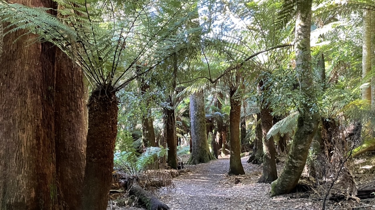 It was a pretty drive through rolling farm land around to the Liffey Falls Conservation Reserve. The road changed to gravel and passed through forest and dappled light before descending down into a lush dense rainforest.