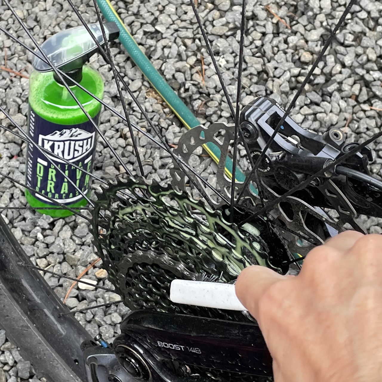 Taking advantage of the bike tools, my mechanic got busy servicing our bikes, and taught me how to degrease and lube the drive chain.