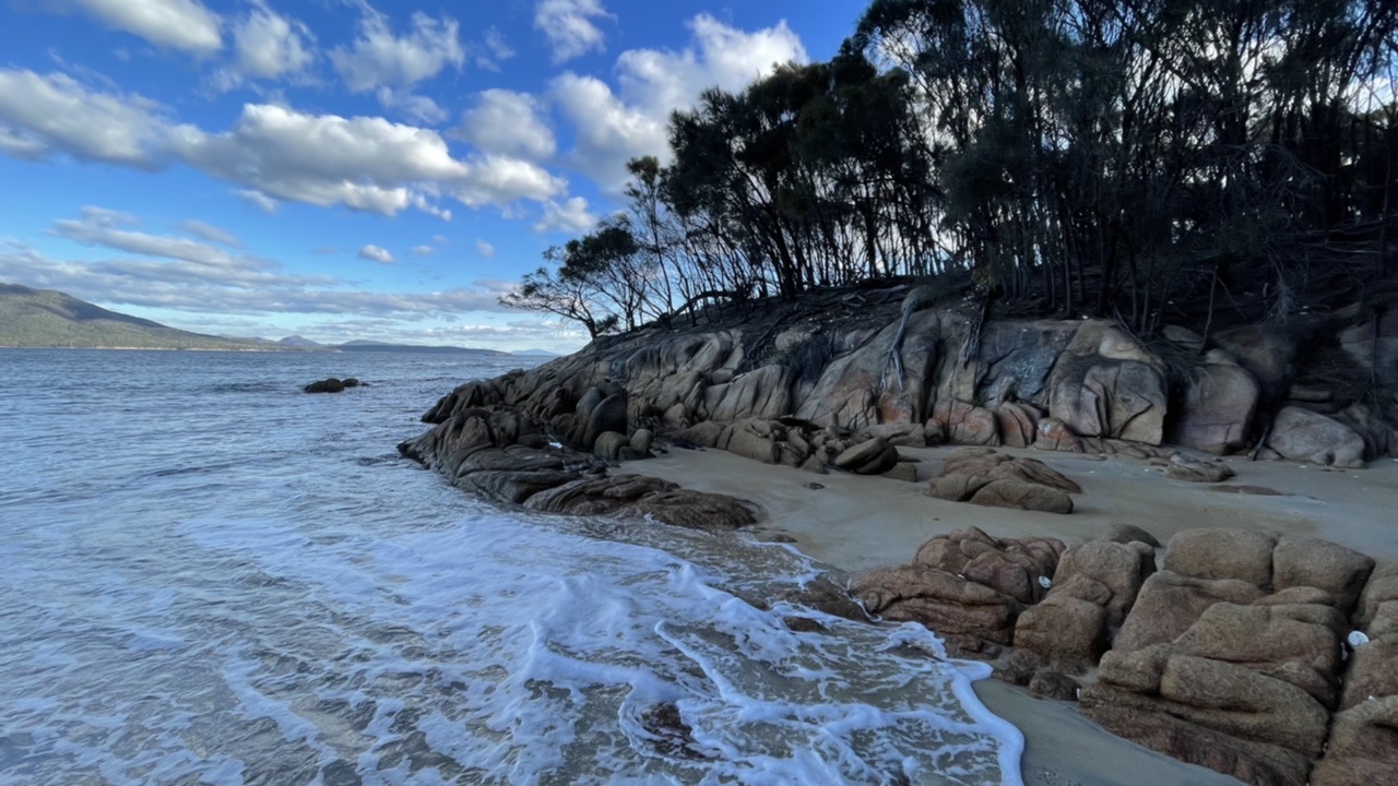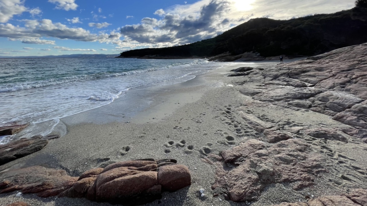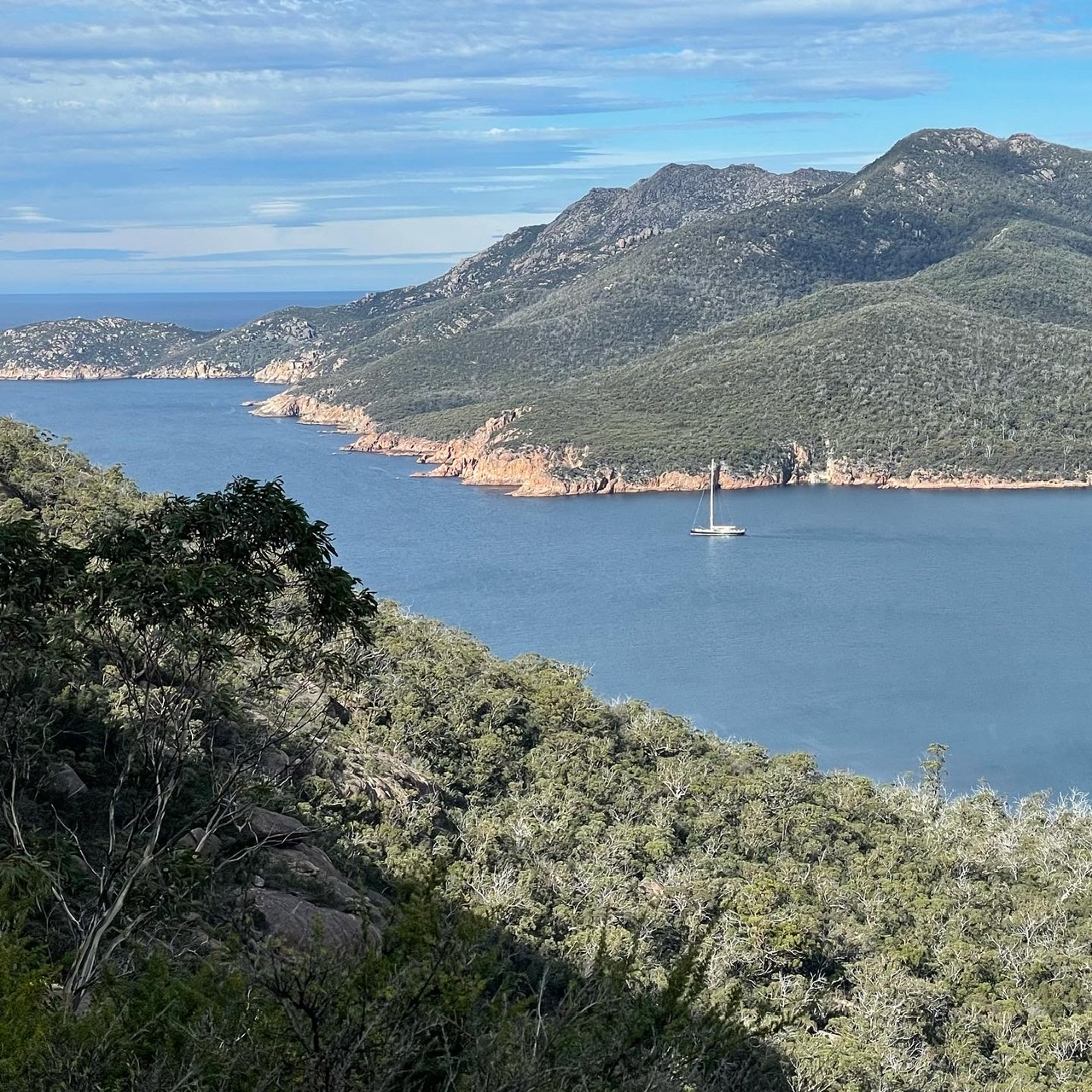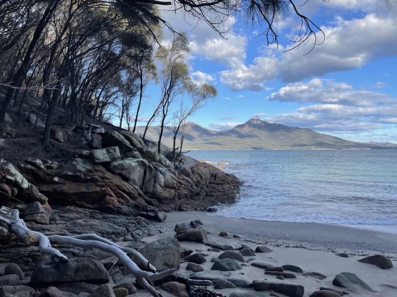 We could see the graceful white beach of Wineglass Bay, the next stop on our route.