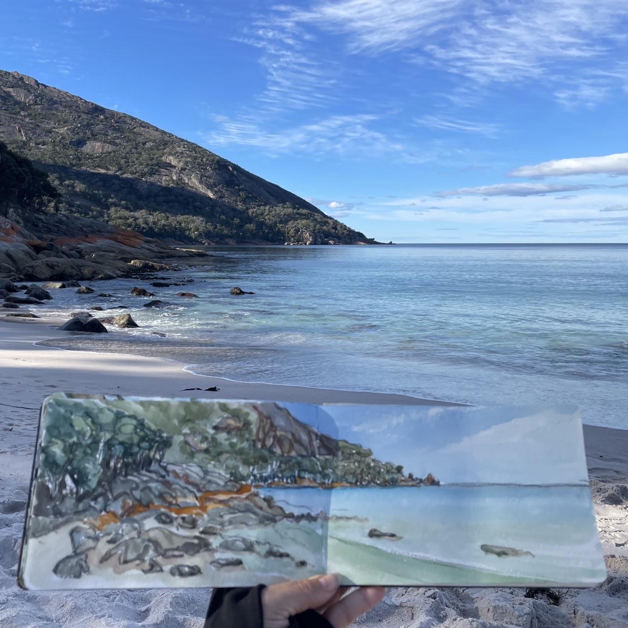 Good on you for doing the entire circuit. When we were there, we just made it up to the Wineglass Bay lookout and back. Both your painting skills are really excellent.