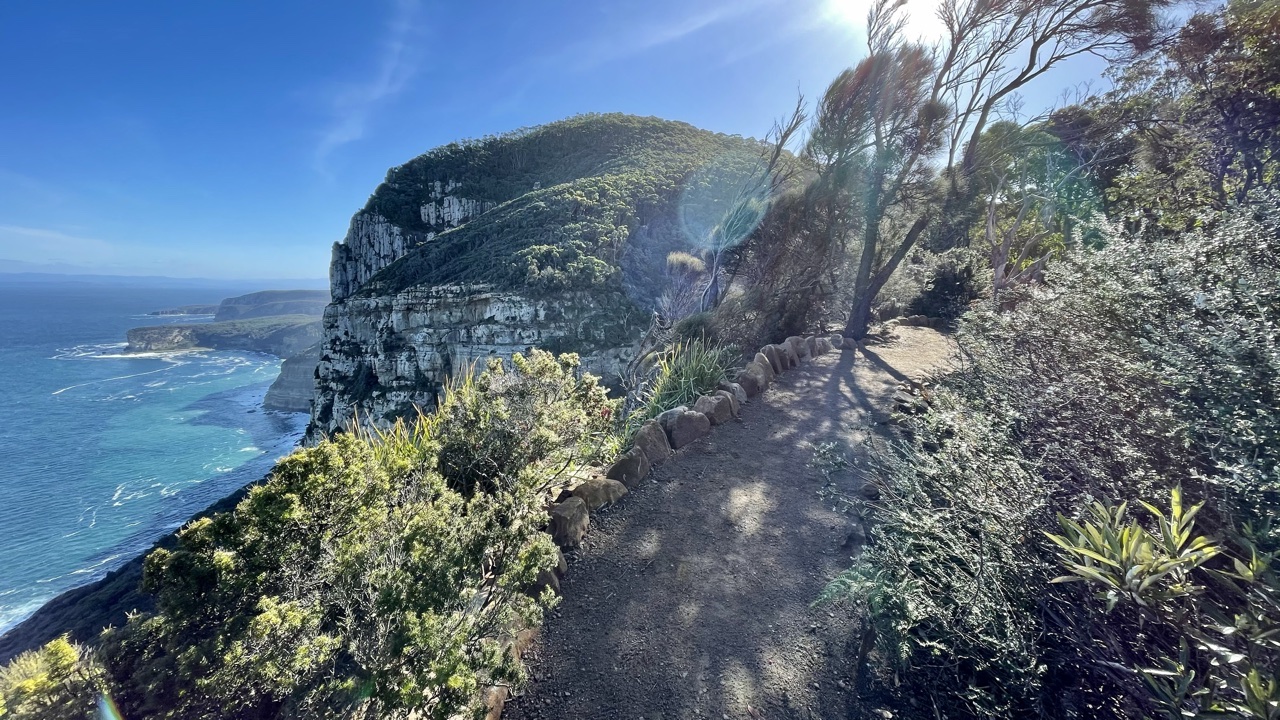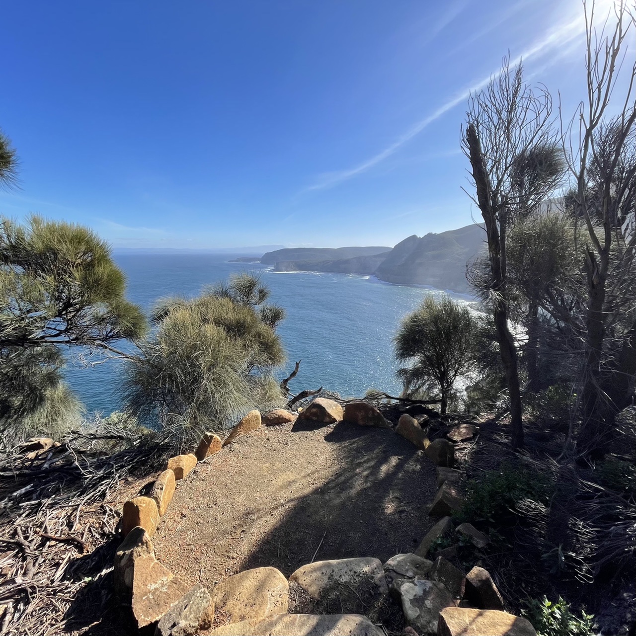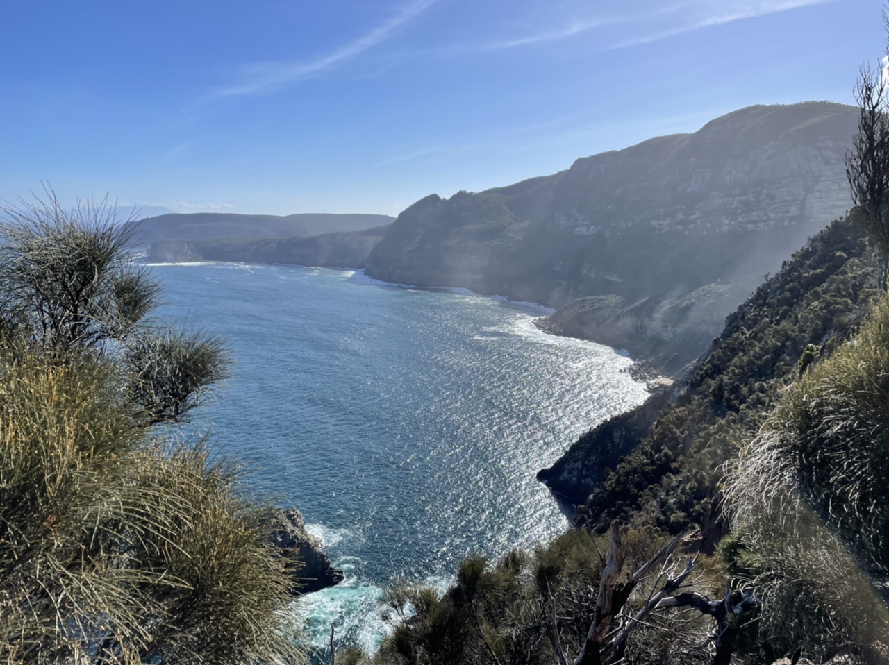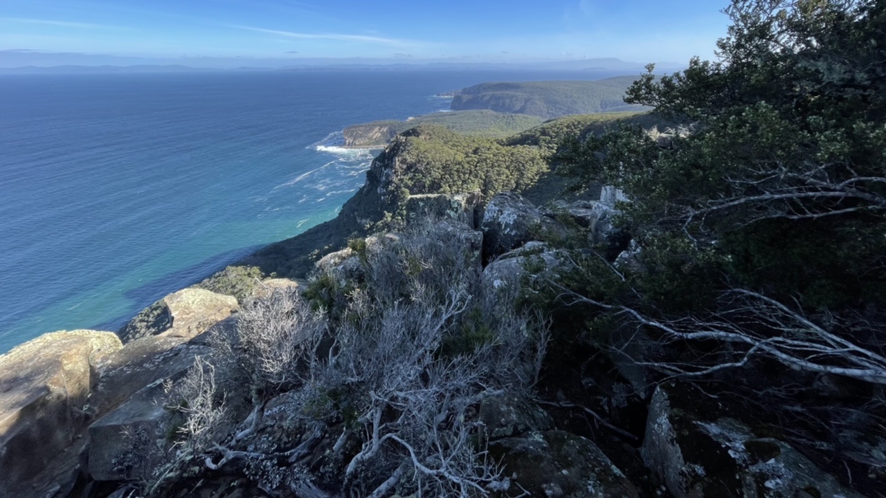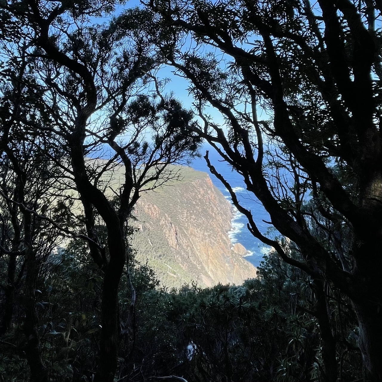 Rainforest shifted to a cliff-side she-oak forest, punctuated with lookouts and staggering views of the sea cliffs. Looking back, we could see that the highest point was the first lookout we’d just come from.