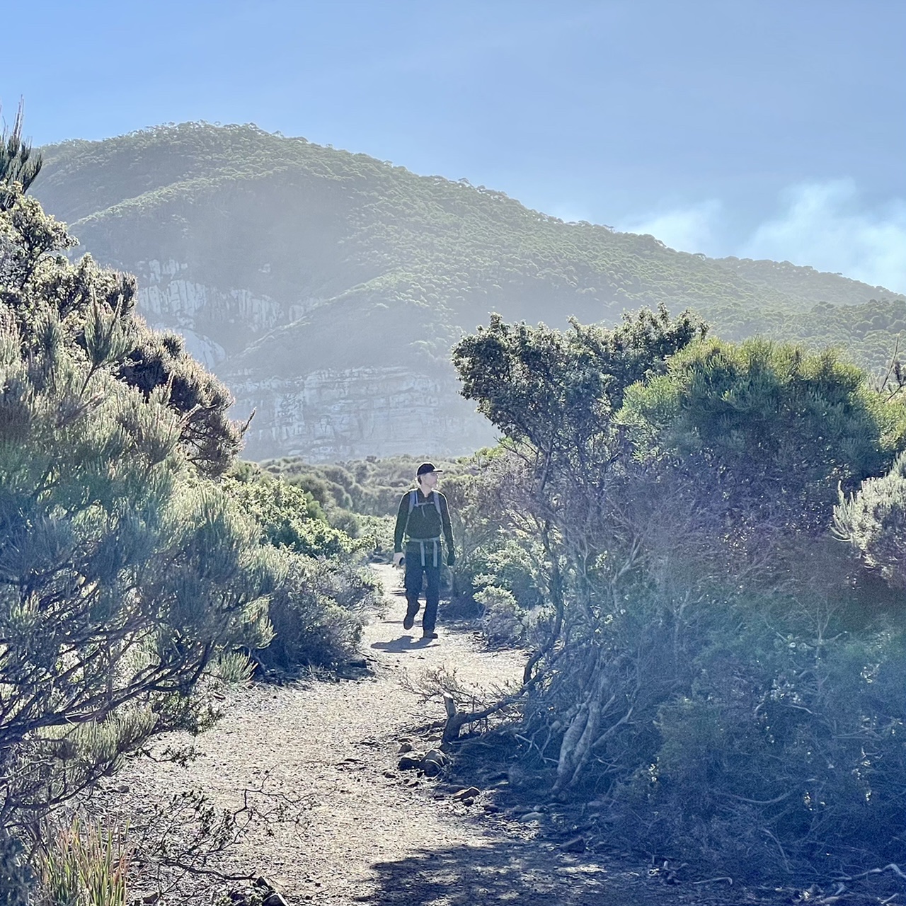 What do we love about the wilderness? The isolation. The undisturbed quiet. To be completely immersed in an environment, engaging all the senses. So our hearts sank as we pulled into the crowed carpark at Cape Raoul, on the Tasman Peninsula. A convoy of at least a dozen campervans had pulled up and the group of raucous campers were assembling at the trailhead. We lingered to let them go on ahead, hoping they were doing the other walk starting from here. And it worked! We neither saw, nor heard from them again.