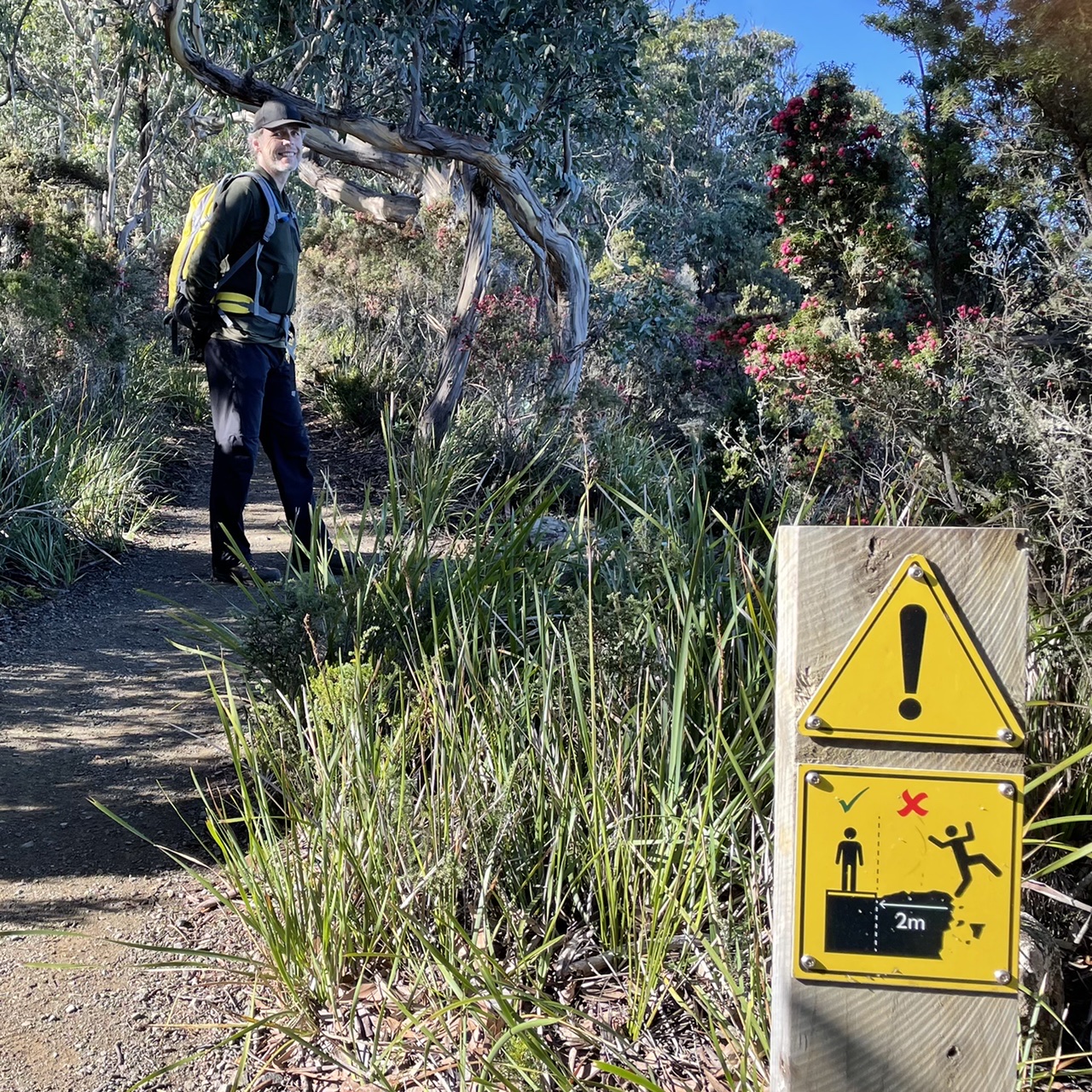 The track steepened and turned to well maintained stone stairs. I paused at the top. I knew there was a reasonable descent ahead and suddenly had a flash back to the pain of the stairs at Wineglass Bay, last week. “Hang on Dave, I might just stretch out my hamstrings first.” Thankfully this worked perfectly! No pain what so ever.