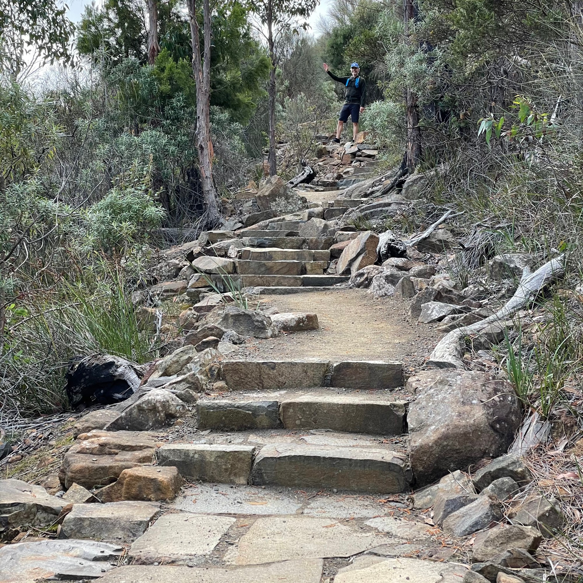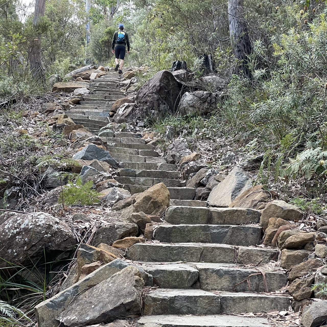 Back on the trail and it was time to get running again. But first, a load of stairs needed to be tackled. I tried not to remember the trail notes mentioned 1000 steps.