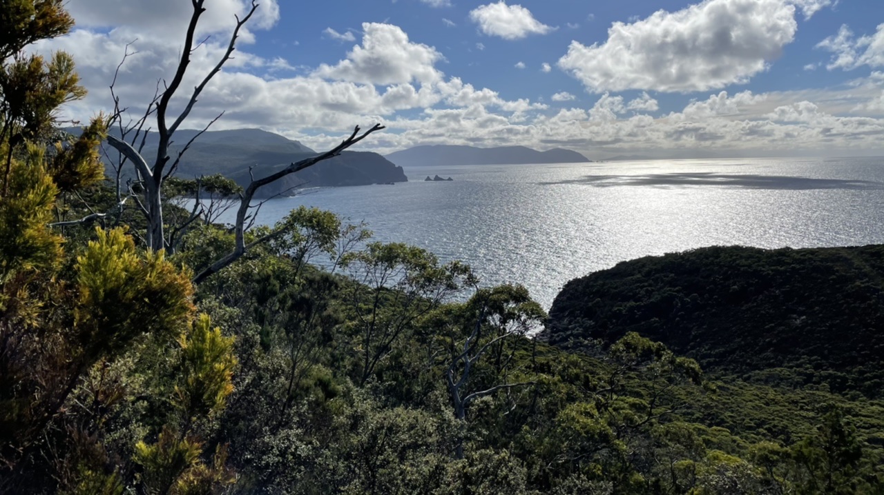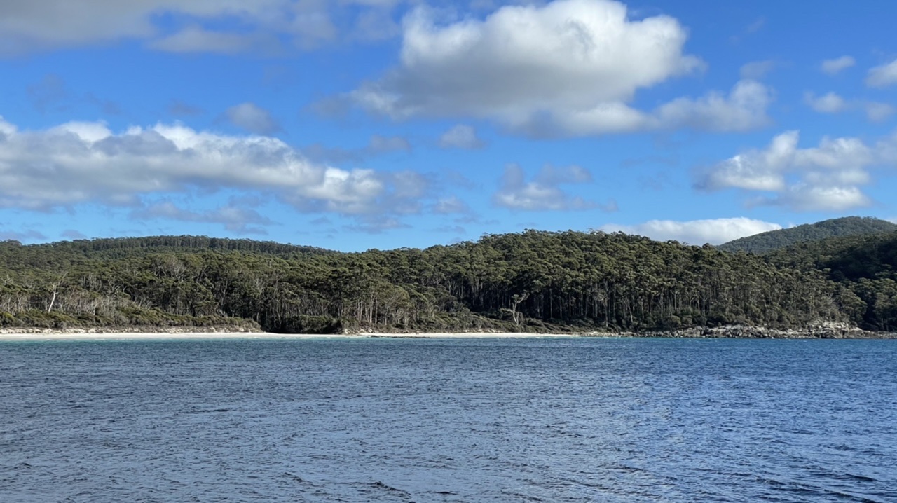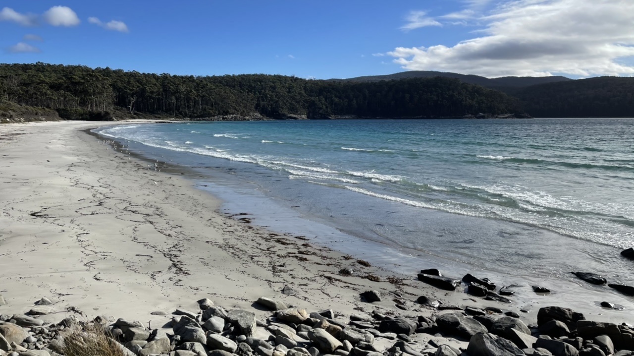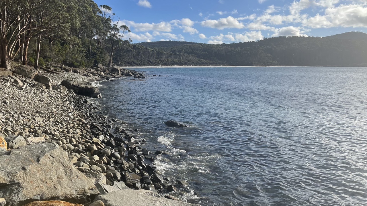 “This is Bluestone Bay at Freycinet. This is Wineglass Bay..”