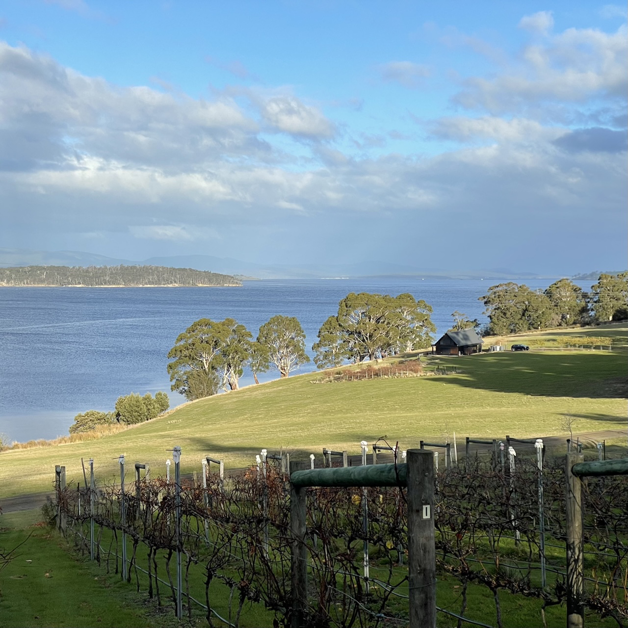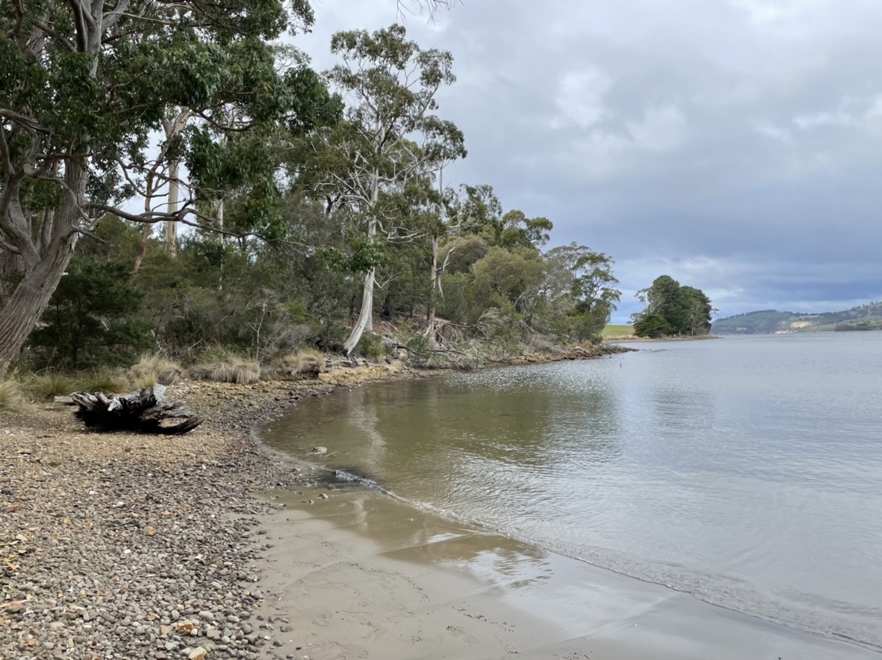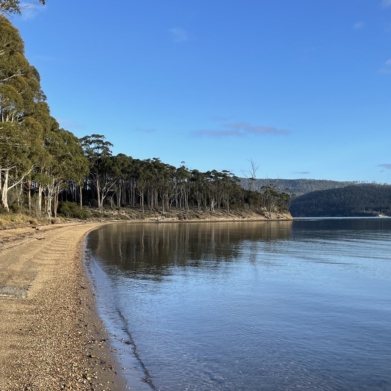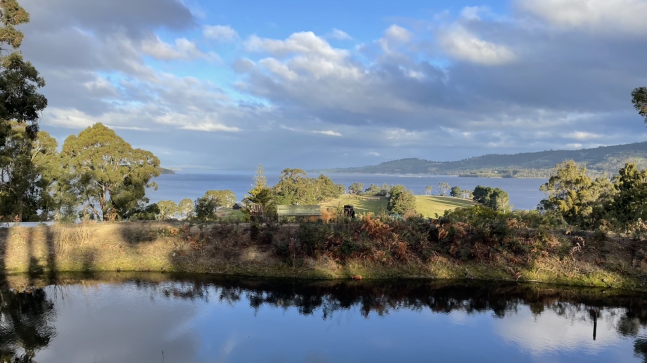 We followed the dirt road that traced along the Huon river, past farms and holiday homes.