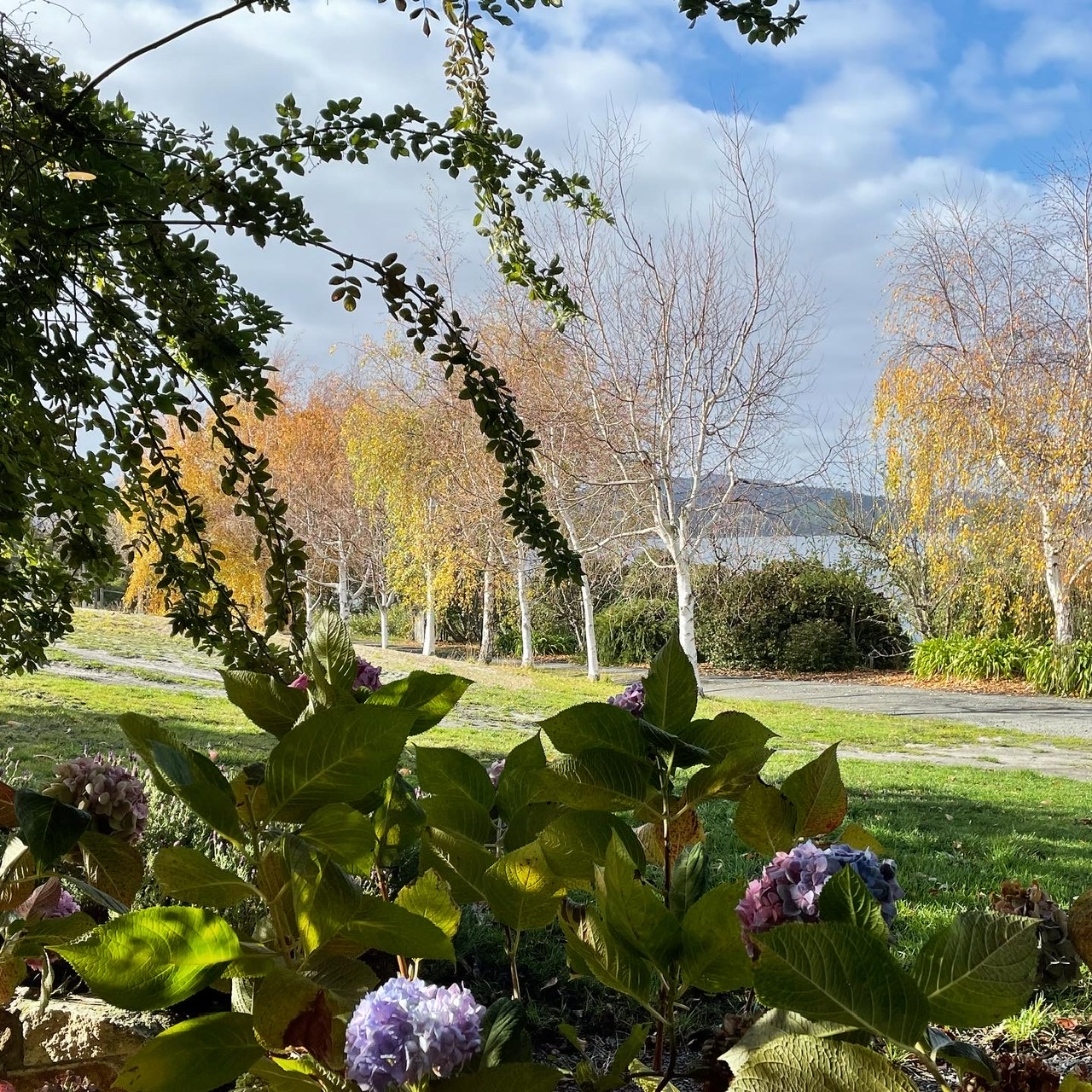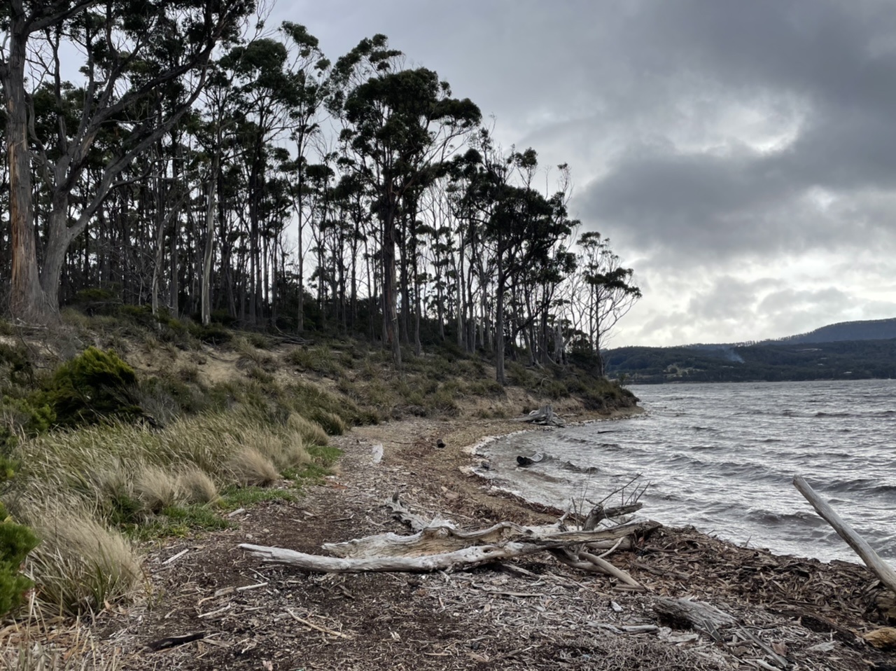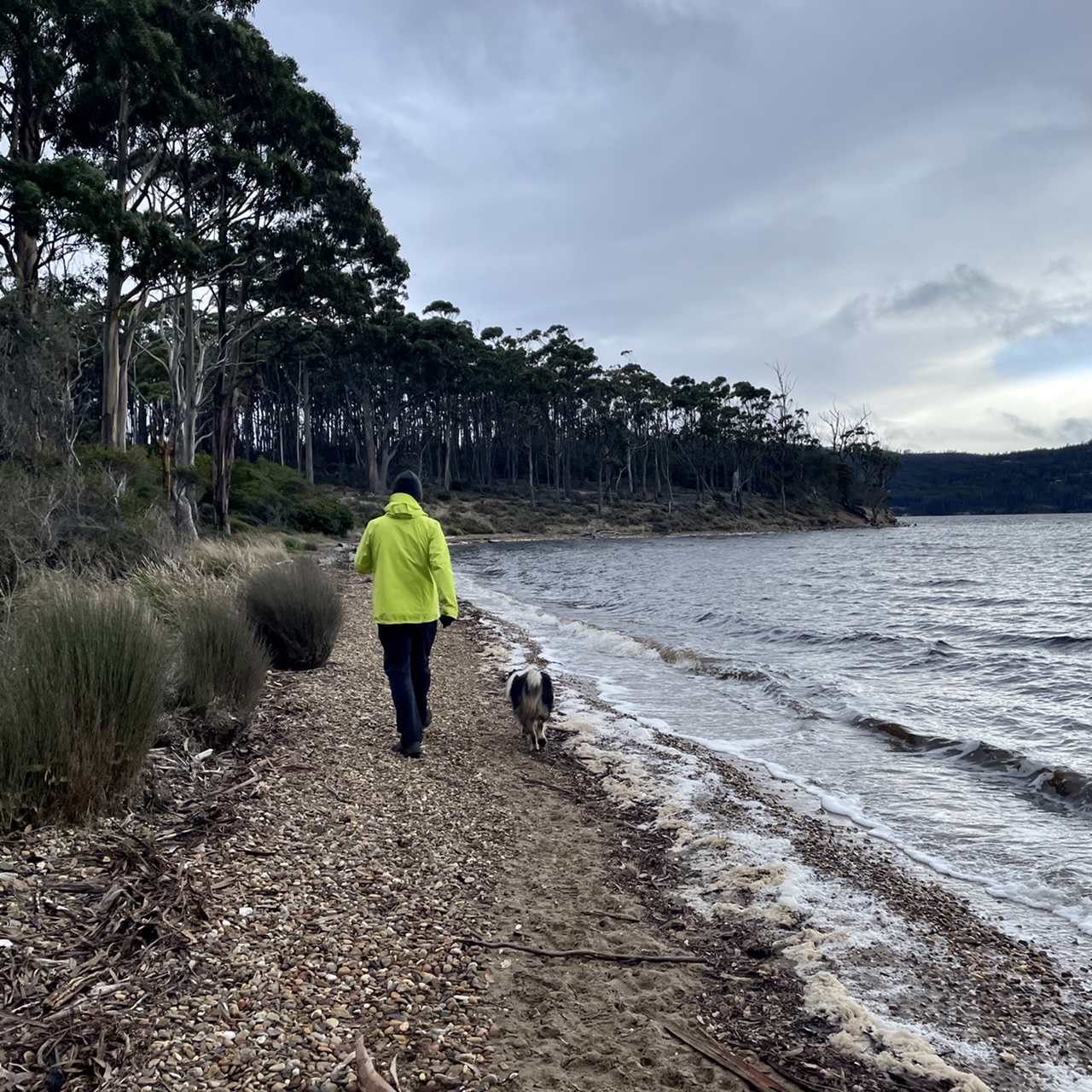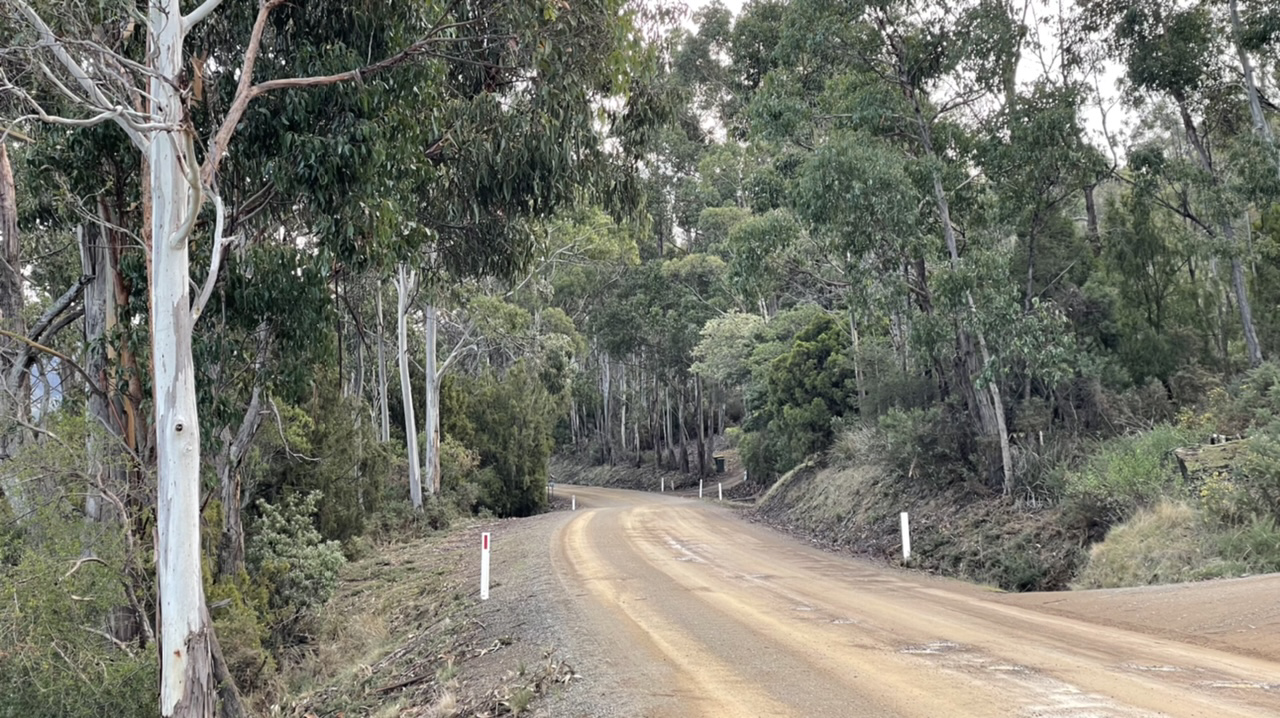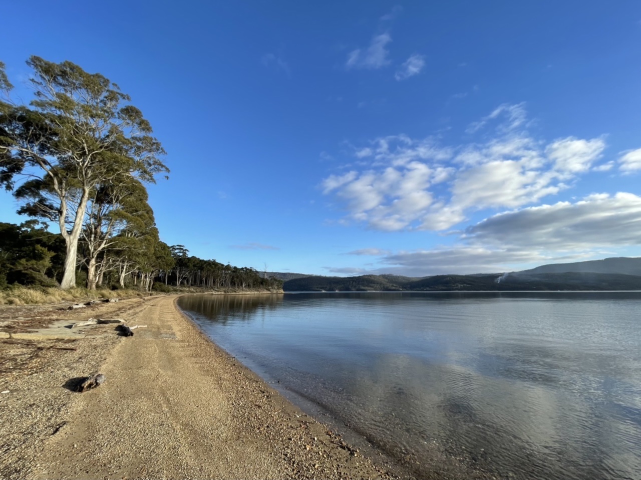 We followed the dirt road that traced along the Huon river, past farms and holiday homes.