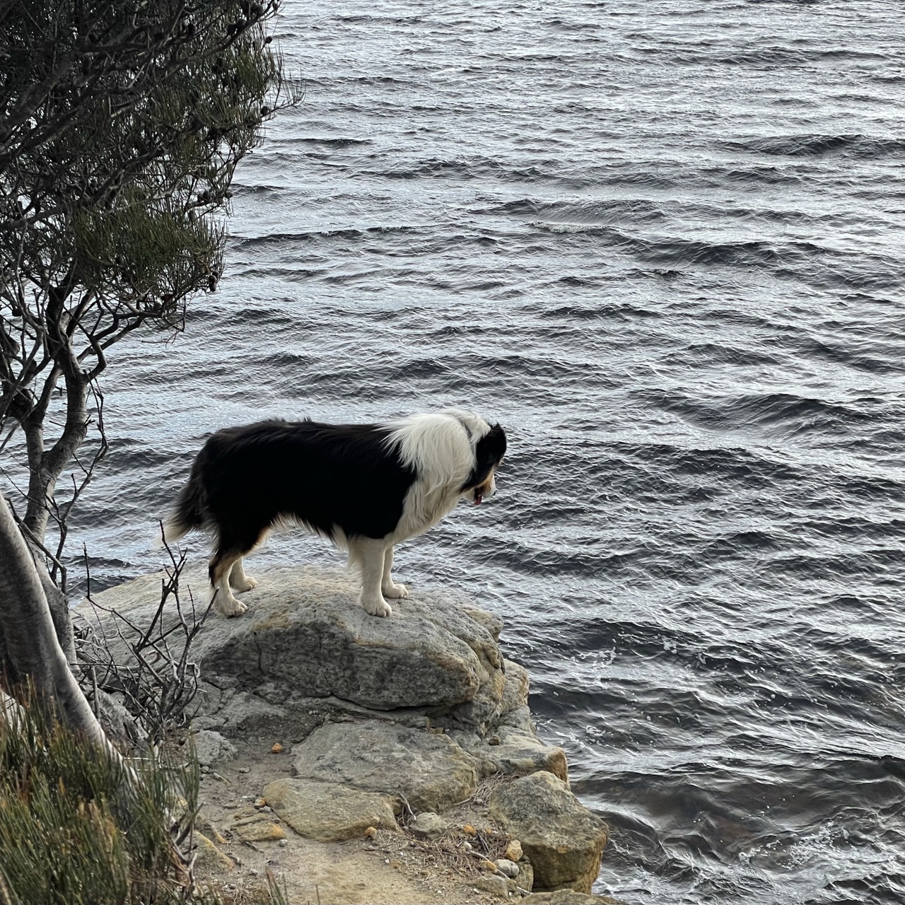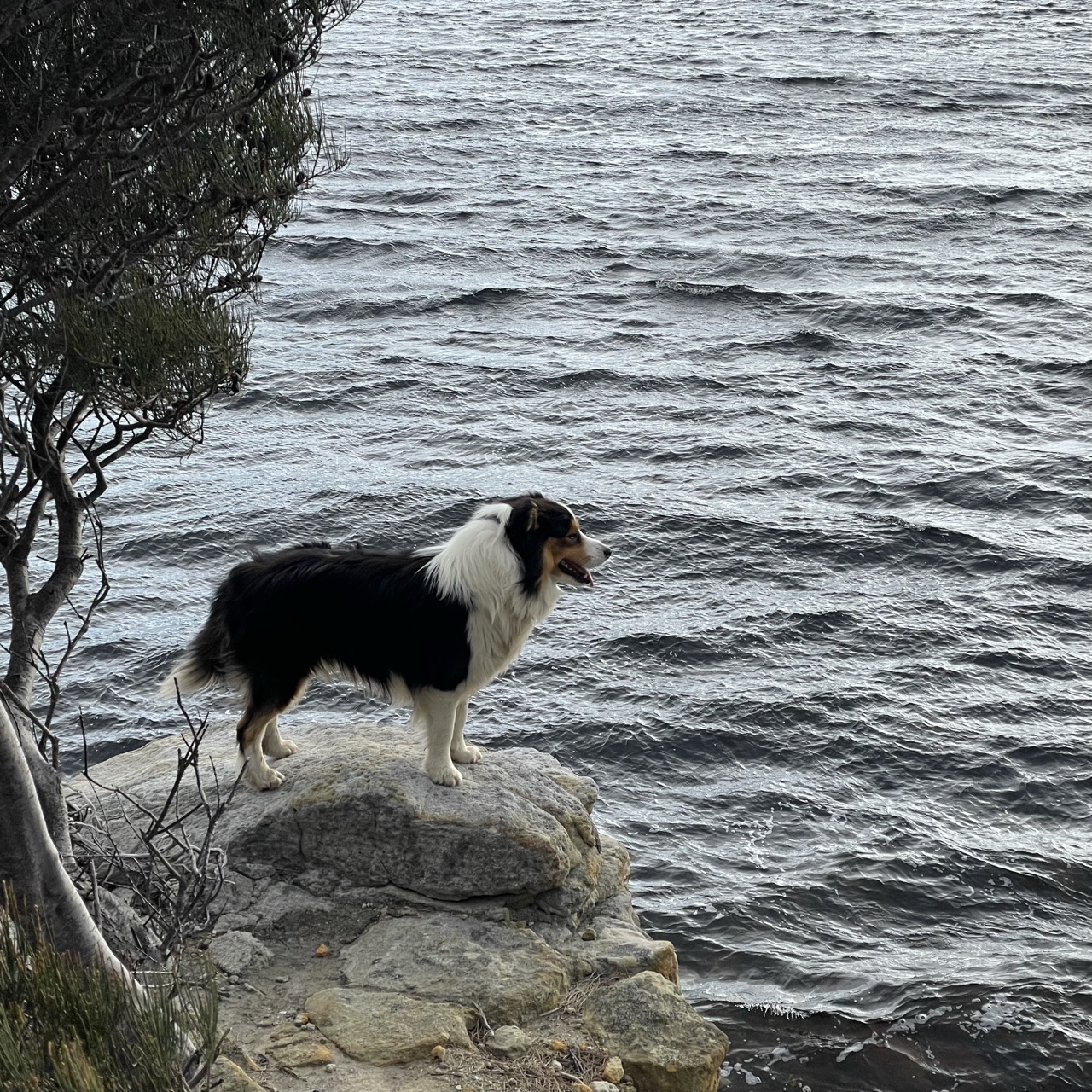 He stood on a rock and looked over the river. Do dogs enjoy a view? It sure seemed like it.