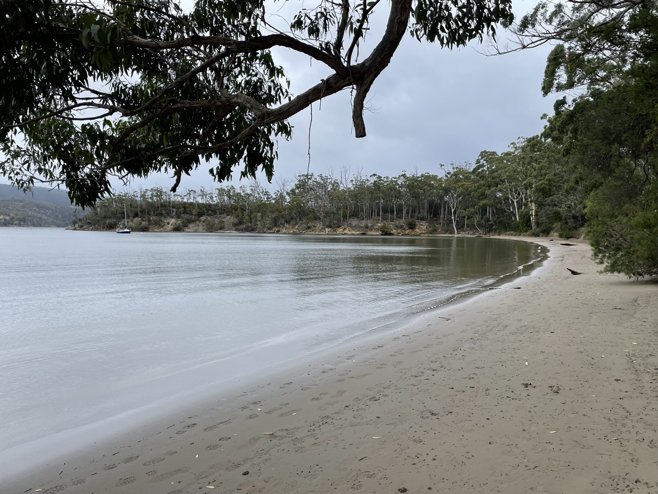 “Dave, pull over. Let’s stop here first!” We pulled into a sandy waterside parking area, and climbed out to investigate; walking onto the sand and into an Arthur Streeton painting.