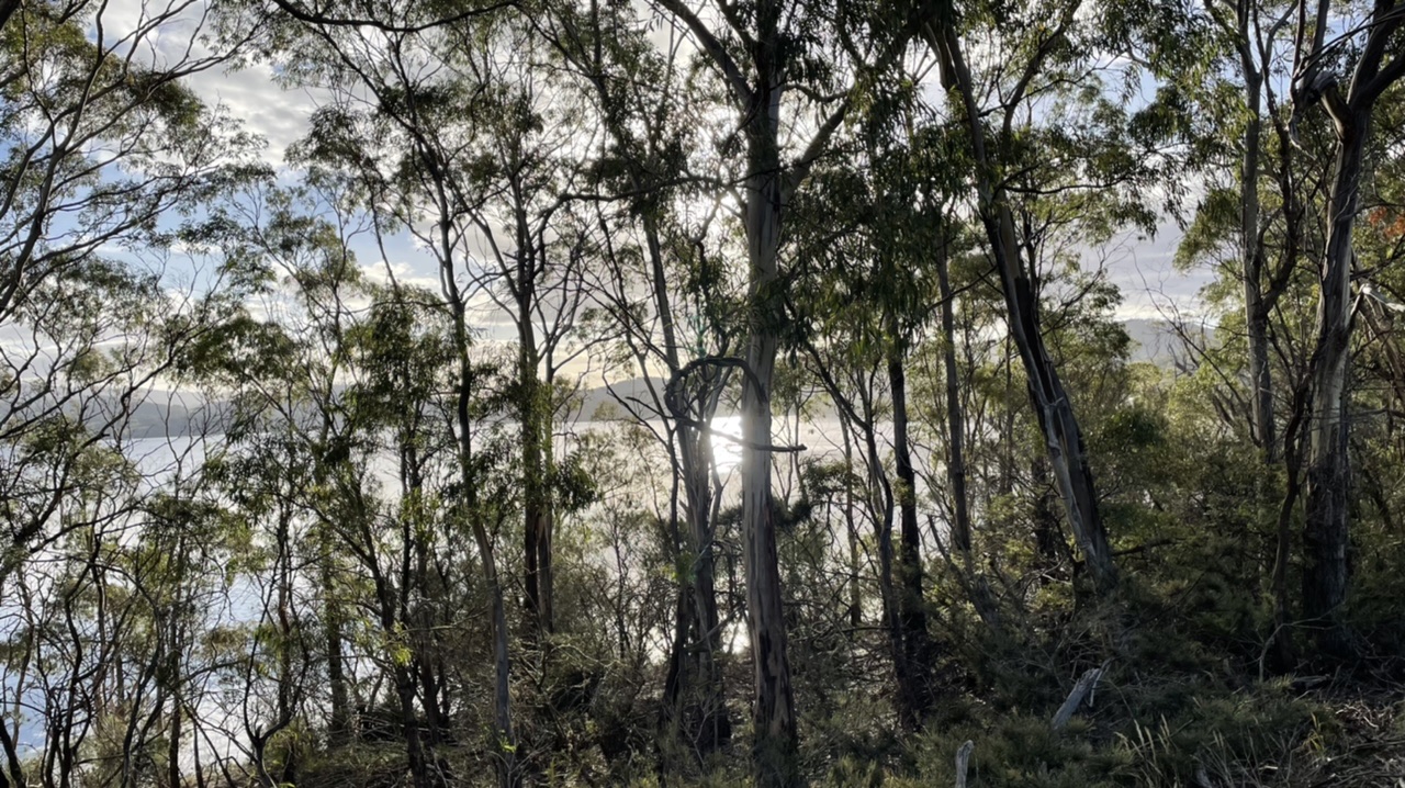 We walked over the hill with 180 degrees of water views. They are regenerating the forest up here. The trees remain and they’ve cleared away the bracken and the introduced weeds in preparation for growing grass for the goats.