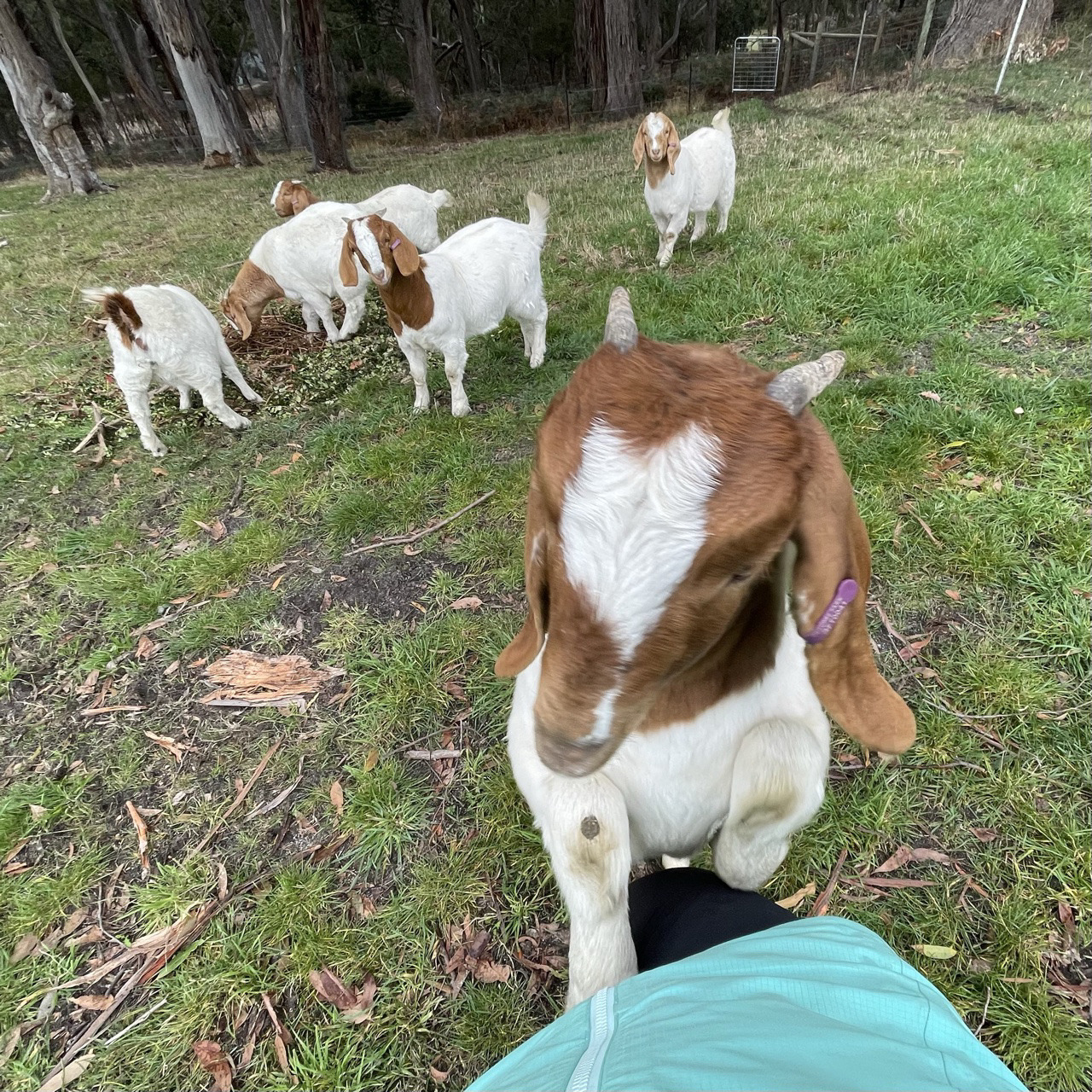At first we didn’t think he was going the right way, so we tried a different gate but quickly realised, the dog was right. He lead us through a field to meet the goat kids. They were hilarious. One was hand reared ‘Crusty’ so is especially friendly and loves pats. She tried to climb me in her excitement.