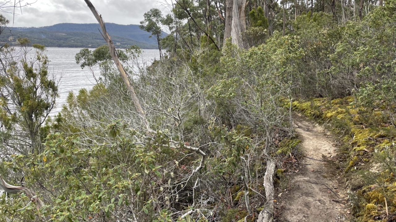 “The best walk looks like Hartz Mountain, but that’s an hour and a half drive away.” David screwed up a eye. That’s a ‘no’ so I continued, “…or the nearest walk is at Eggs and Bacon Bay.”
