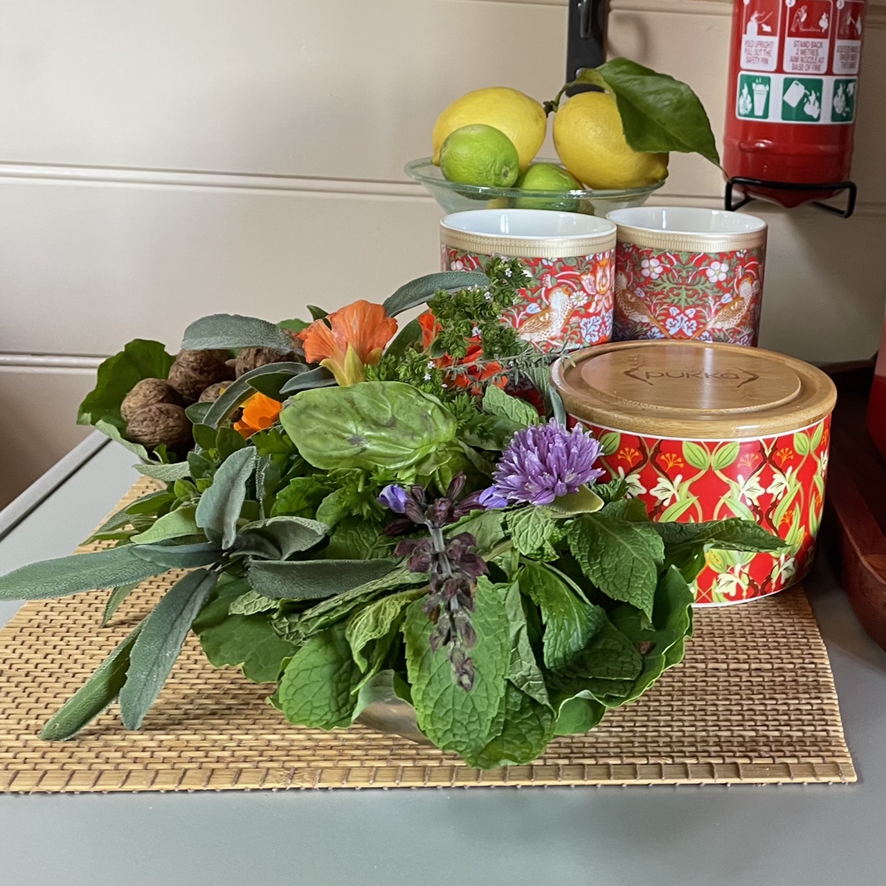 - From the garden: Apples, lemons, limes, figs, fresh herbs, chilli & fresh cut bright pink and fragrant roses.