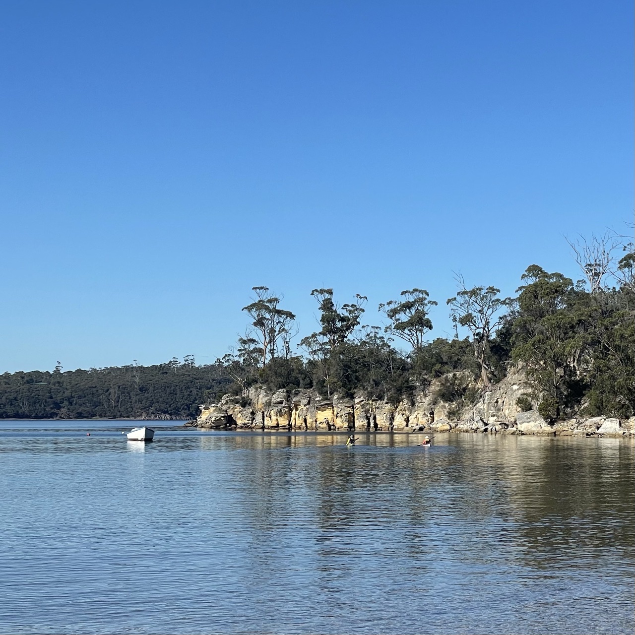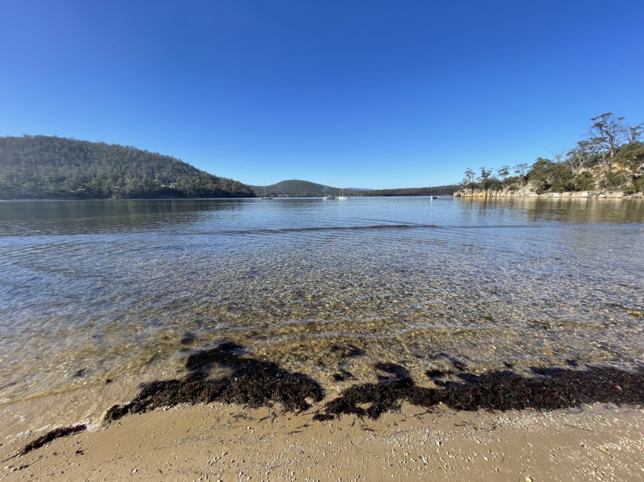 The water was so calm it struggled to make waves. Let’s call them ripples. A couple who had been sitting on the sand, dusted themselves off, climbed back into their Kayaks and paddled out into the bay. We were alone on the beach now.