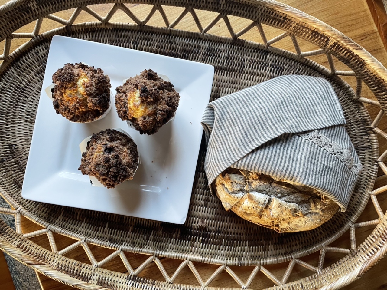 - Home-made: wholemeal sourdough and blueberry muffins x6; jams x2; a middle eastern dried fruit compote that Dave described as “the taste of 100 Christmases!”