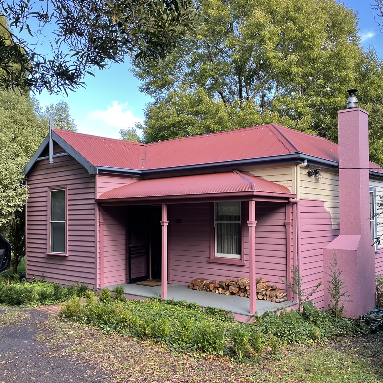 Our Host had forwarded us about some storm damage, a tree had fallen across the road from the house and cut-off access. But by the time we arrived there was no sign of the tree. So with great relief we pulled up in front of our pretty in pink cottage. Home for the next week.