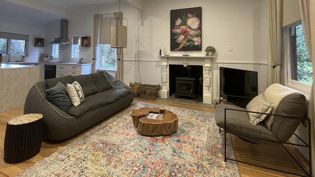 There are a few quirks to work around: a bar fridge was too small for a week’s groceries and the fireplace was minuscule. Like one log at a time, small. Most of the logs available didn’t fit. It was a full time job to keep the thing alight. I gave up after the first try and we used the heat pump instead. Worked a treat.