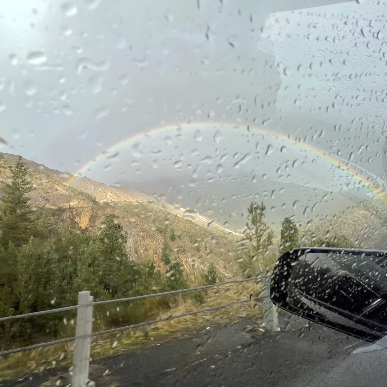 Coming down from the mountain pass into Queenstown felt a little like coming into land. Banking left and right, being buffeted by winds and rain. Suddenly There was a burst of sunshine and a magnificent rainbow.