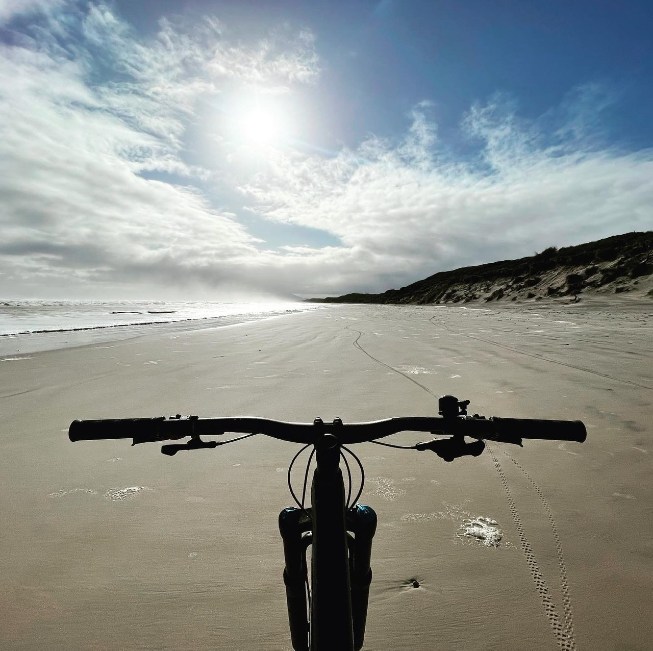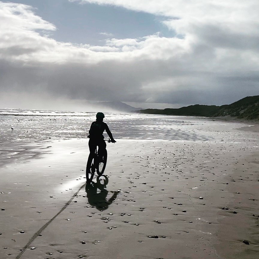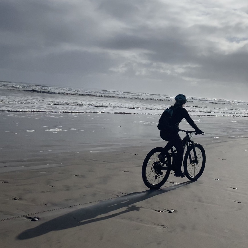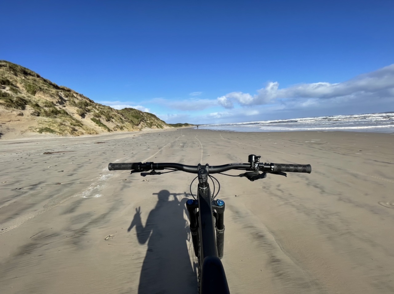 Never having ridden on a beach before, I loved the feeling of the firm sand and smooth pebbles beneath my tyres.
