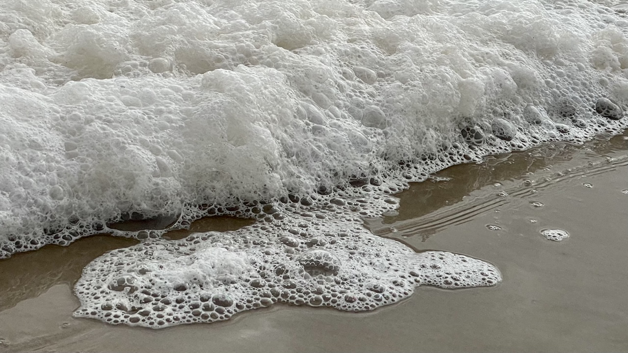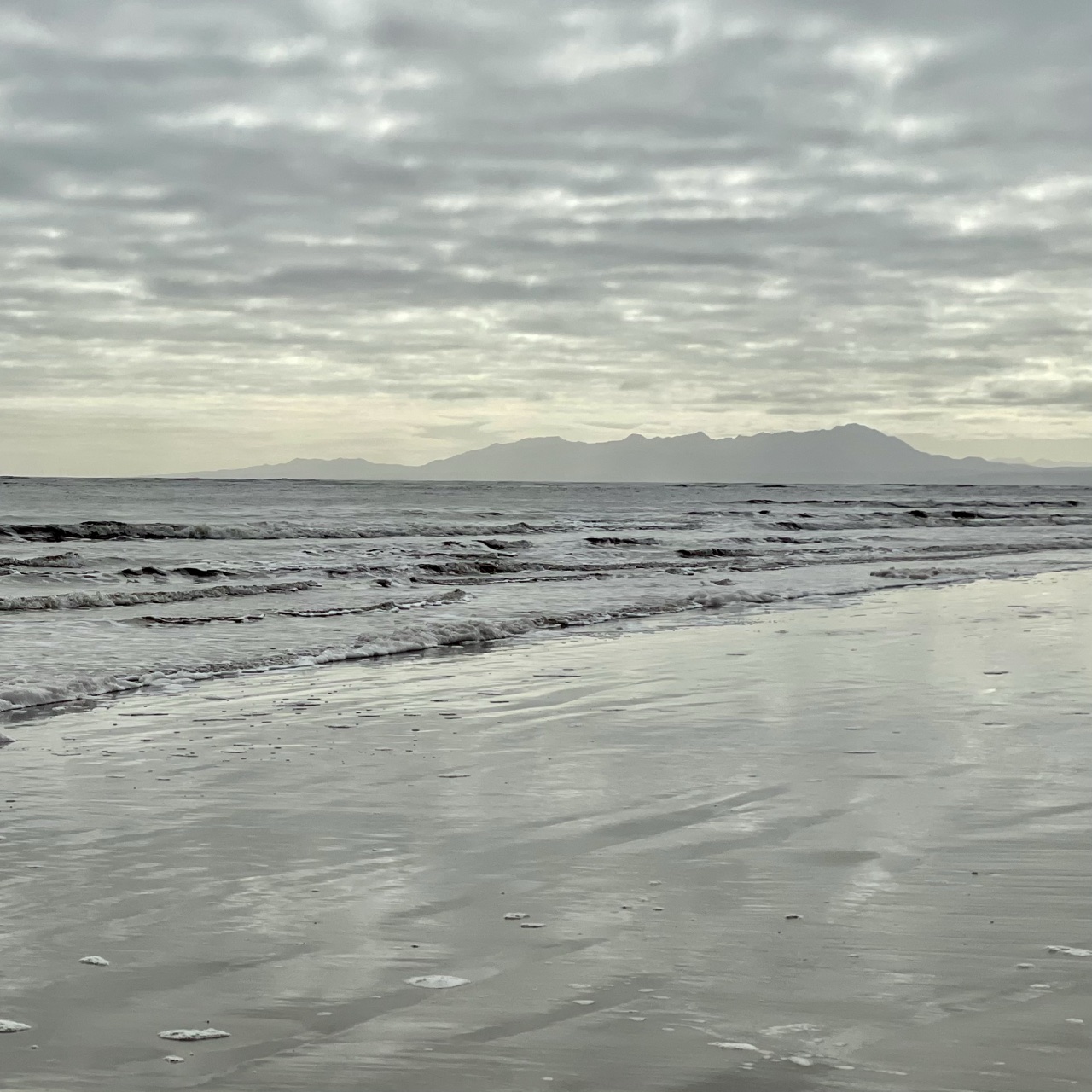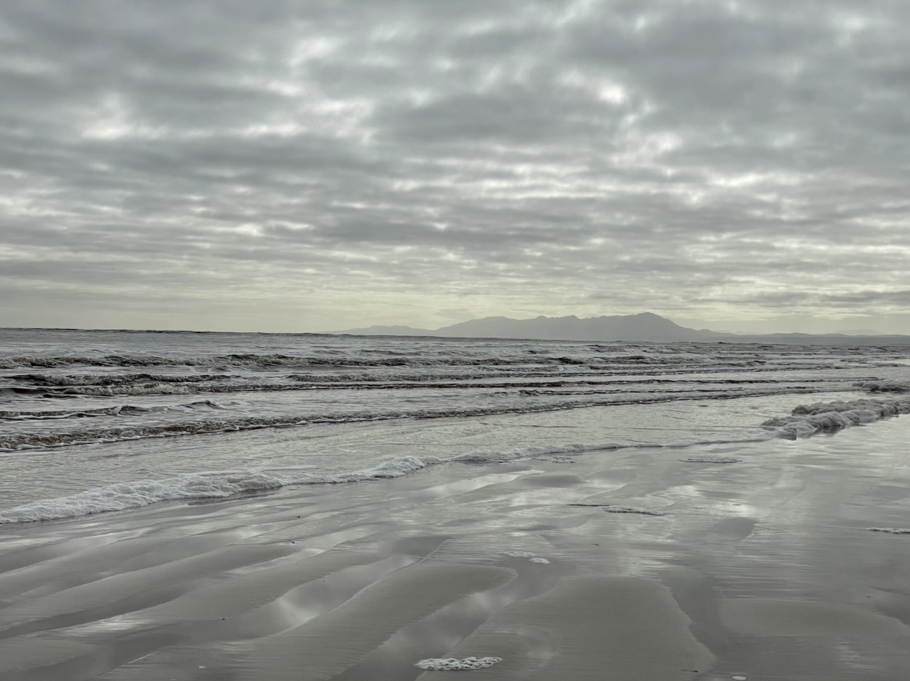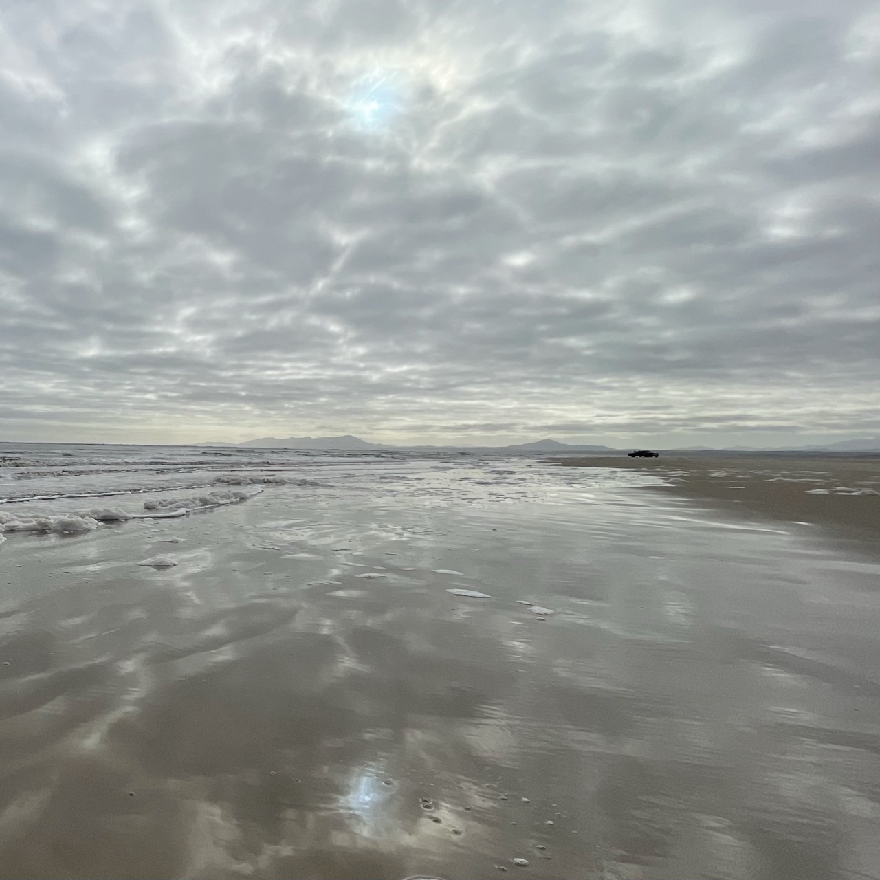 White foam and waves; silver clouds and golden light reflecting in the smooth wet sand. It was beautiful.
