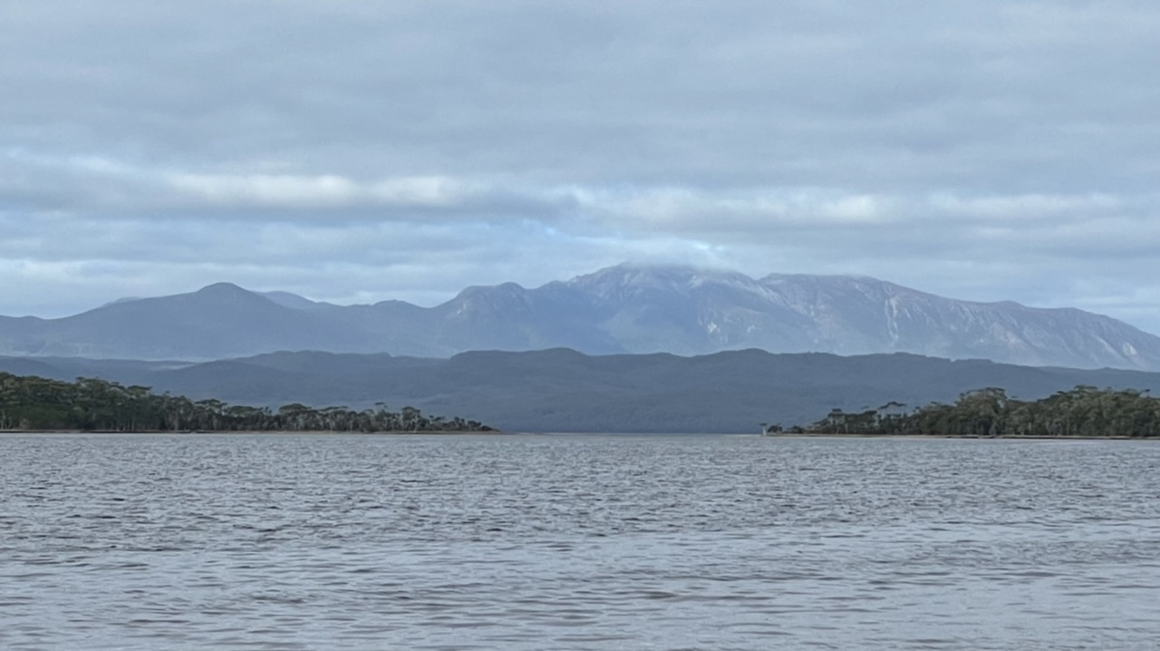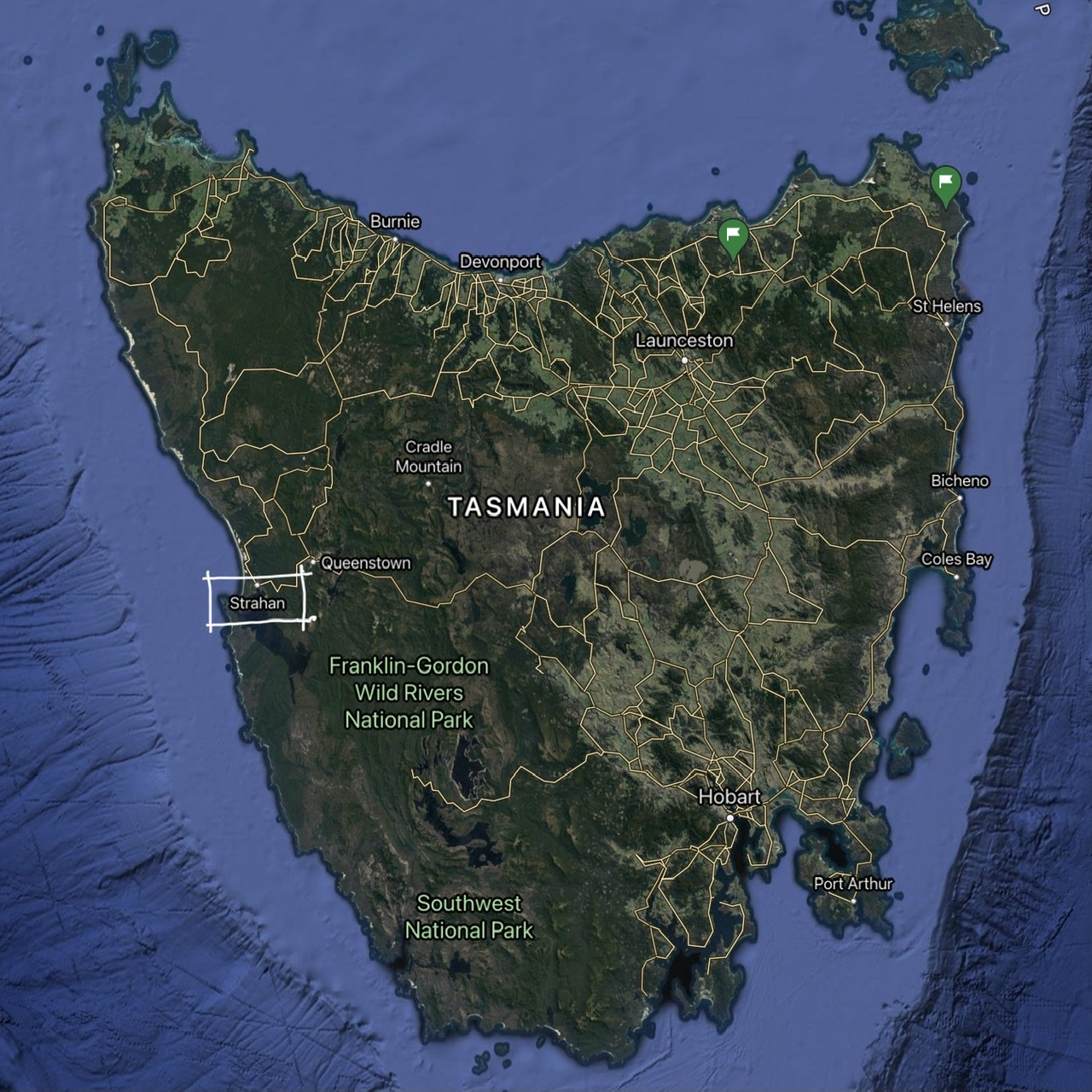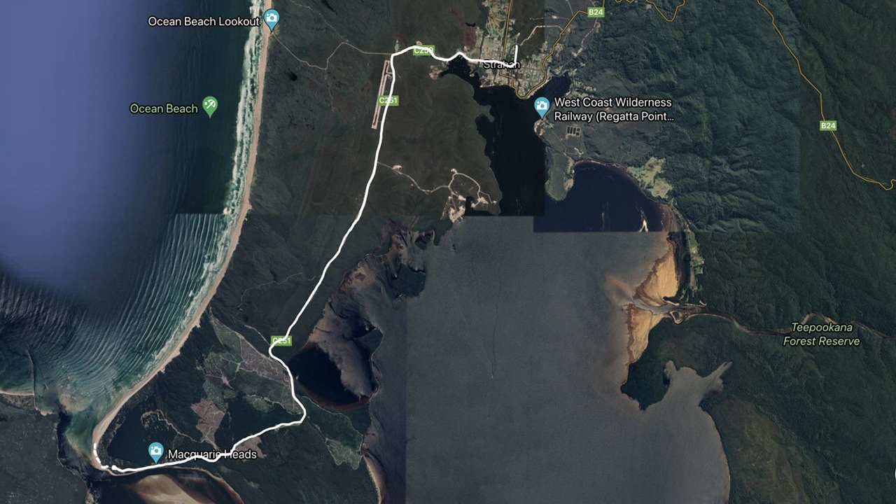 The road from Strahan passed through coastal heath, then dropped down to the edge of the harbour with views across to the mountains. Further along the peninsula we entered a lush, dense working pine forest.