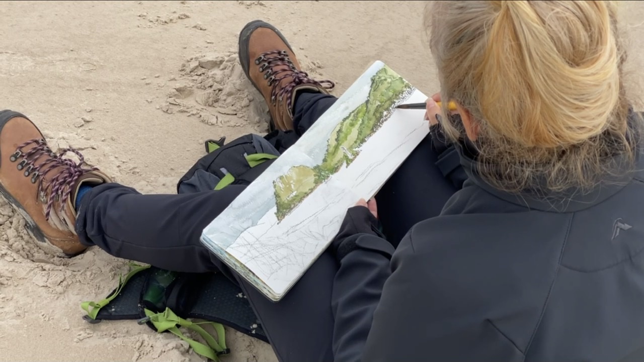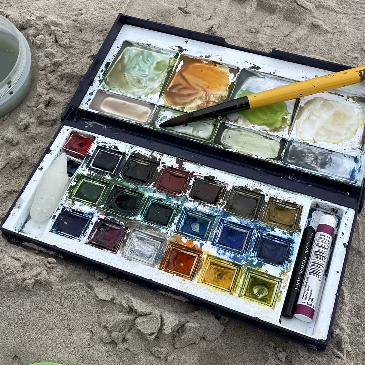 We found a spot amongst the dunes that was reasonably sheltered and settled in for an afternoon of painting. It was surprisingly easy to get comfortable in the dunes and I soon lost track of time.