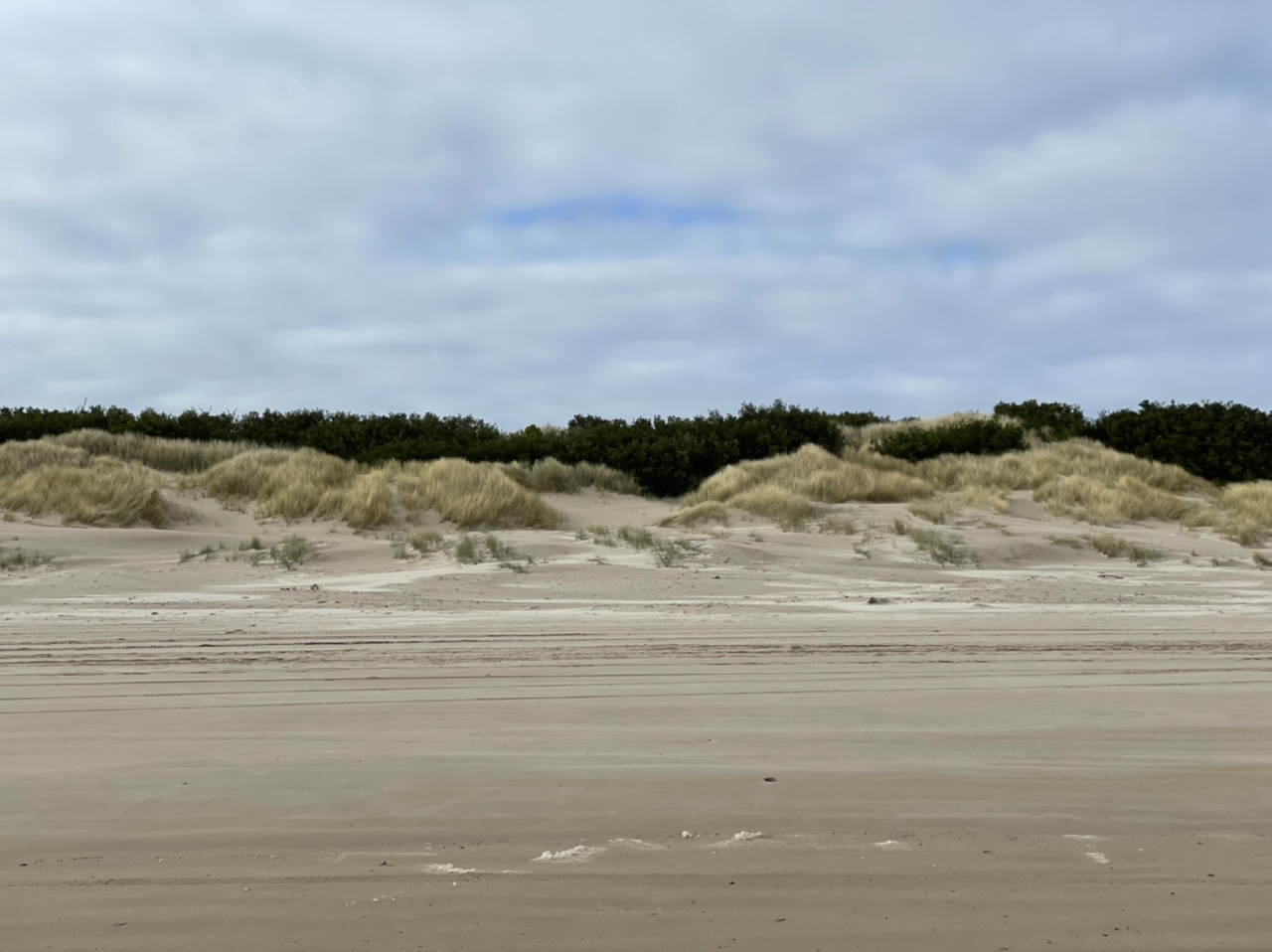 Rather than driving down onto the beach and getting Kenny’s wheels dirty, we parked in the camping ground and walked through the dunes towards the beach.