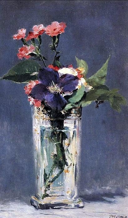 Oelleys et clematite dans in vase de cristal Published December 15, 2014 at 411 × 700 Edouard Manet, Oelleys et clematite dans in vase de cristal, 1882.
