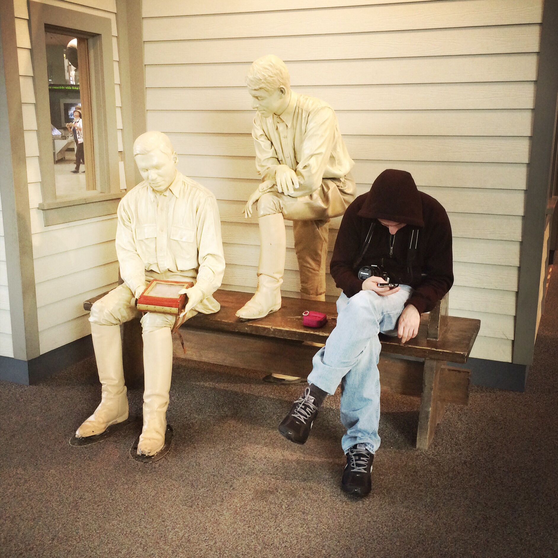 This guy checking his phone made me chuckle sitting next to the statues looking at a map scroll